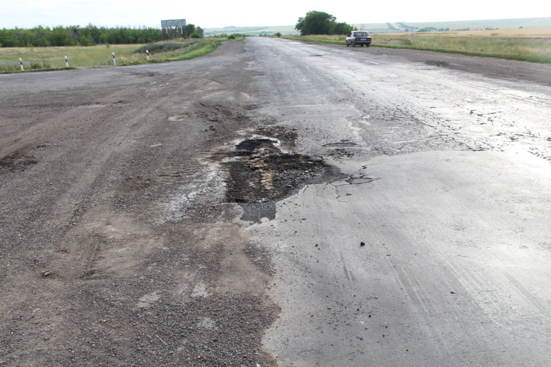Когда сотрудники «Дорожного контроля», осоловевшие от ужасов Дергачей, въехали на территорию Озинского района (участок до границы с Казахстаном – 45 км), им на минуту показалось, что дорога тут хорошая. Но затем пришли в себя и увидели все те же ямы, колеи, рытвины, бесконечные латки. Дорожное полотно было разрушено на обочинах, непонятно, где заканчивался асфальт и где начиналась степь.