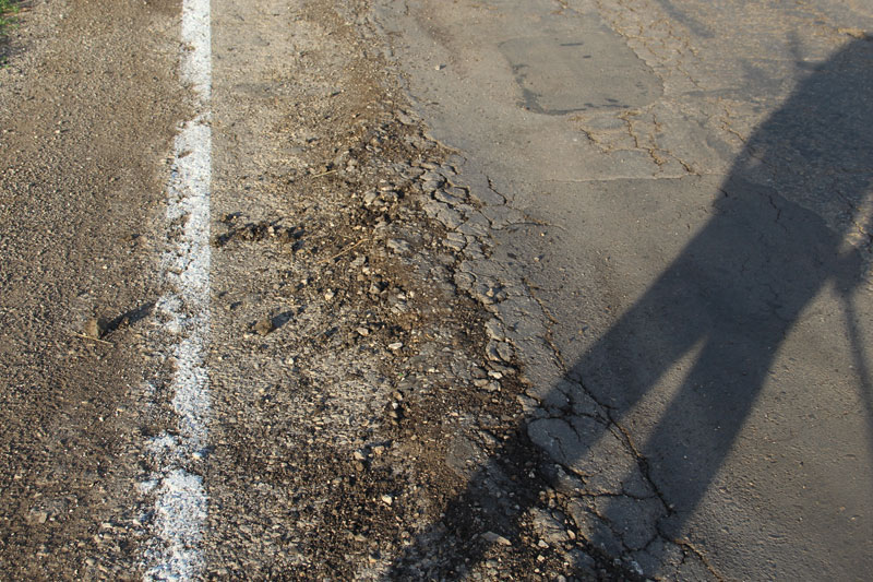 Кроме того, линии разметки были кривы, словно их наносил пьяный, виляющий из стороны в сторону, велосипедист. В одном месте полоса длиной метров 300 ушла в сторону, и ее закрасили серой краской.