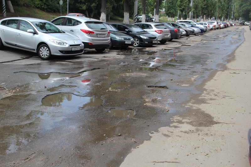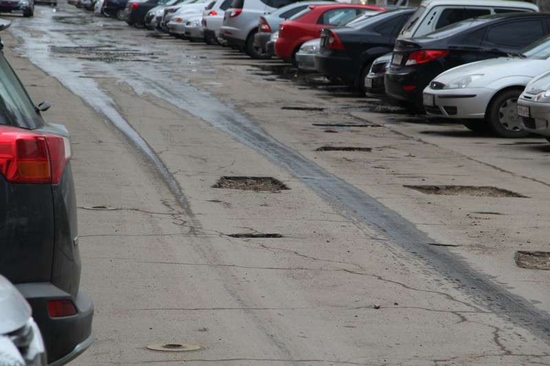 Вдоль торгового центра «Атрио» из-за обилия припаркованных машин у водителей не остается вариантов для маневра и приходится ехать по выбоинам.