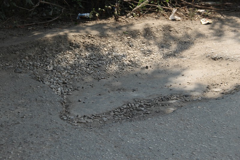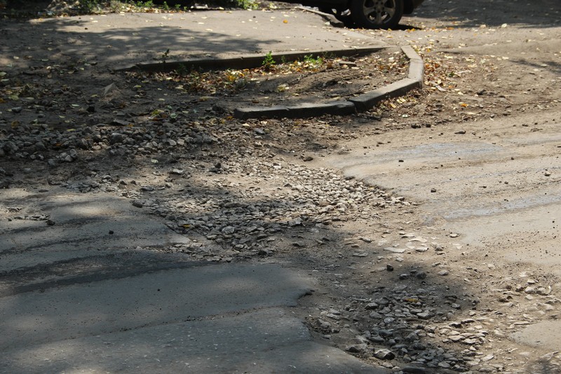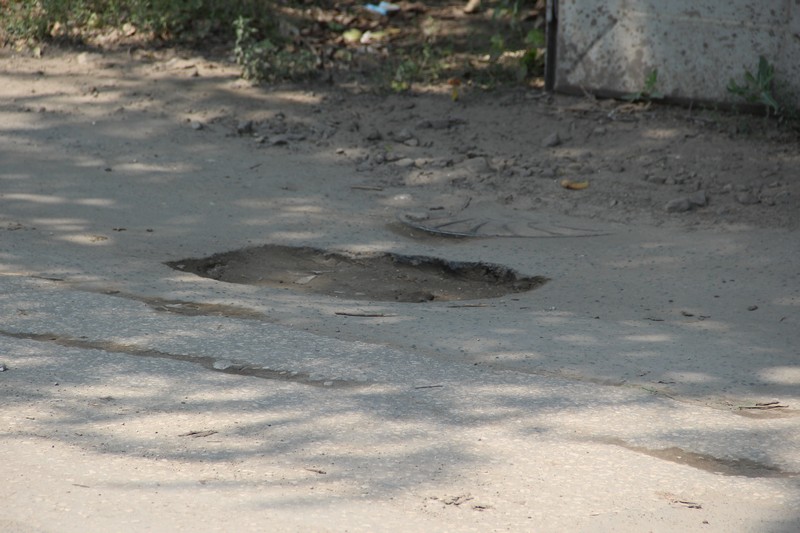 Пересечение с Большой Садовой знаменательно ямой и находящейся рядом кучей прикатанного, выступающего над поверхностью дороги асфальта. Соседствует с этим памятником дорожного «искусства» очередной провалившийся люк.