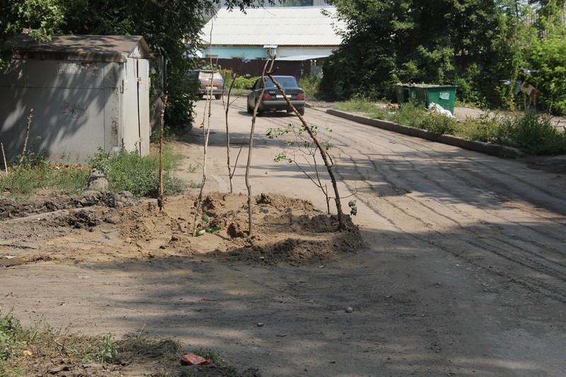 У дома №1 по Степана Разина место вскрышных работ засыпано песком, в который аккуратно по периметру воткнули веточки. В данном месте дорога сужается до одной полосы, кроме того затруднен въезд на дворовую территорию. На подобную халатность ГИБДД должно обратить особое внимание и оштрафовать ответственную организацию, проводившую работы и не оградившую место вскрытия дорожного полотна должным образом.