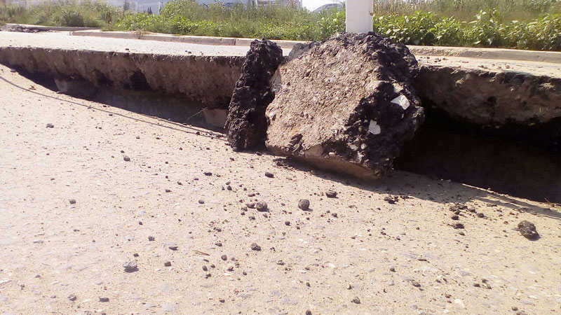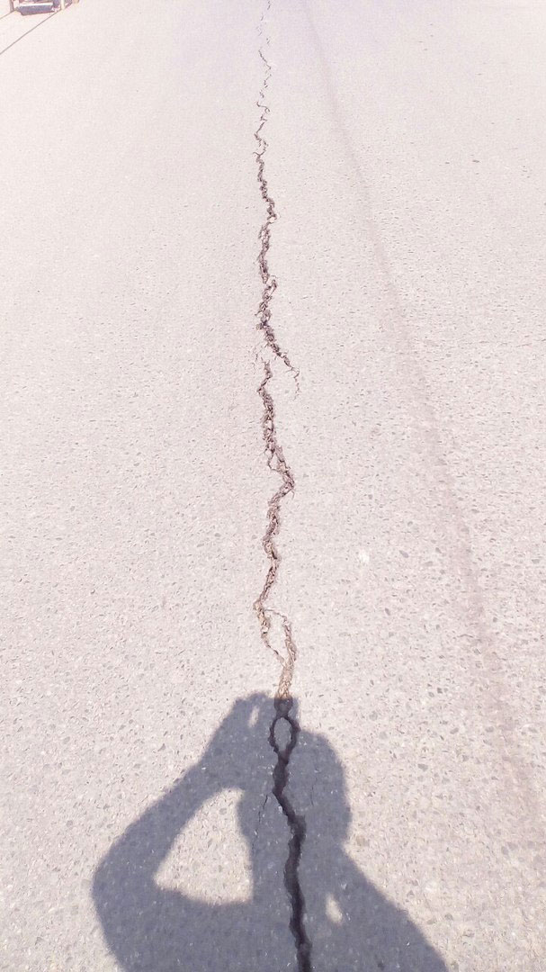 Самый большой провал произошел еще в конце прошлой недели, рабочие огородили его ленточками, автомобили объезжали место ЧП по встречной полосе. Местные жители назвали это «трещиной в ад». Сегодня утром жители поселка обнаружили, что активно проваливается второй участок и на встрече.
