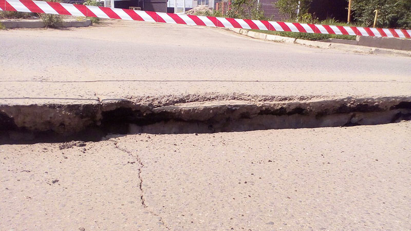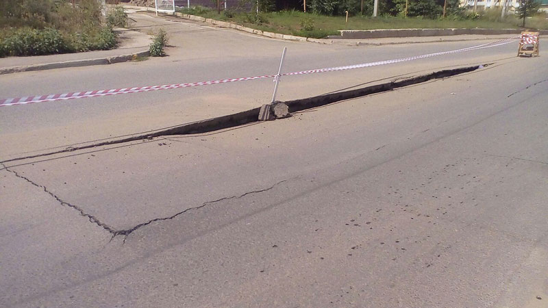 Напомним, что 29 июля по улице Исаева текла «горная река» из свежей заплатки. Вероятно, она ускорила проваливание дороги. Судя по крупным трещинам на дороге, ее разрушение продолжится.