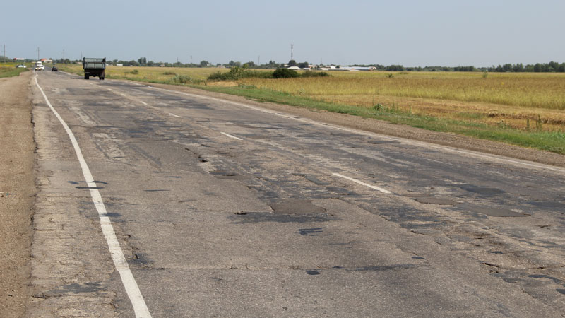 За Марксом (или в Замарксье) дорога теряет не только в ширине, но и покрывается многочисленными колеями, волнами и трещинами и, по сути, остается такой на протяжении сотни километров.