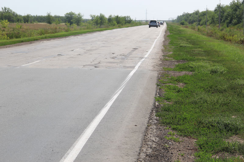 Участок трассы длиной более 40 км от Энгельса до Маркса пестрел латками всех размеров и оттенков. Сотрудники ДК так и назвали его: «50 оттенков серого». При этом дорога, хоть и нуждается в ремонте, но сейчас по ней можно ехать с предельно допустимой ПДД скоростью, не боясь остаться без зубов или колес. Бетонное основание из последних сил держит геометрию трассы, не давая ей «растечься» и слиться с окружающим ландшафтом. Было видно, что за дорогой ухаживают, словно за тяжело больным человеком, латки аккуратные, асфальт довольно качественный и не продавливается пальцем, хотя день был жарким. Мы уже было настроились на поездку с ветерком, но в Марксе нас ждал первый сюрприз.