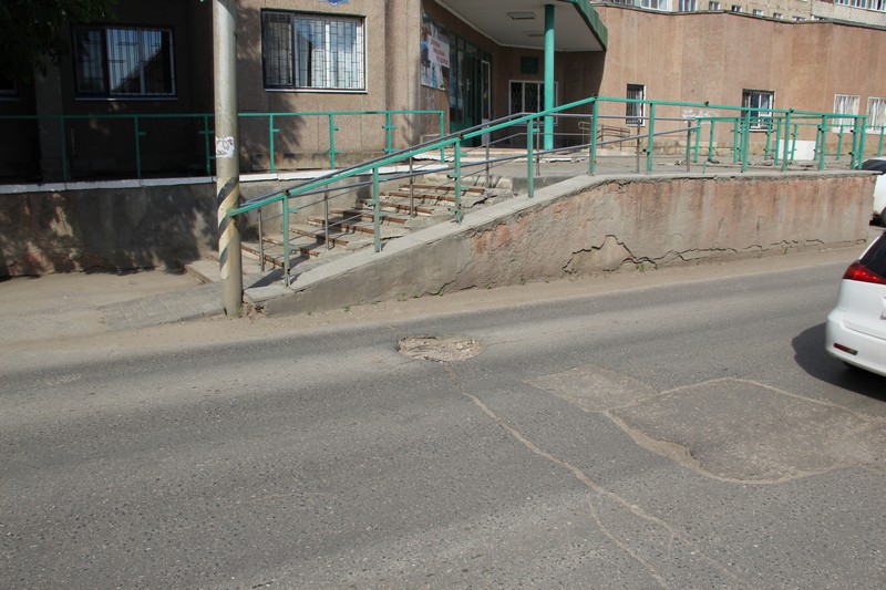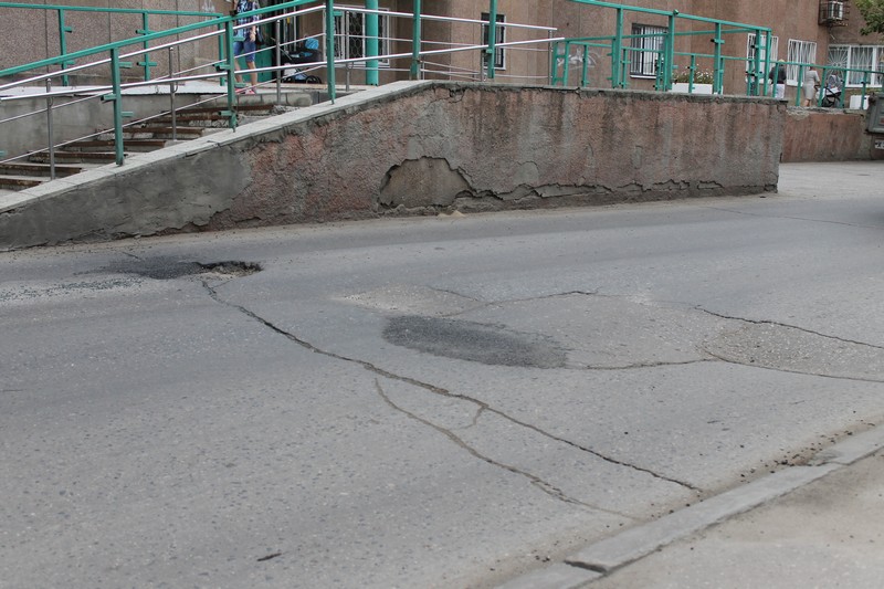 Заметно, что дорожники пытались заделать другие участки у дома №6, в котором располагается городская поликлиника №11.