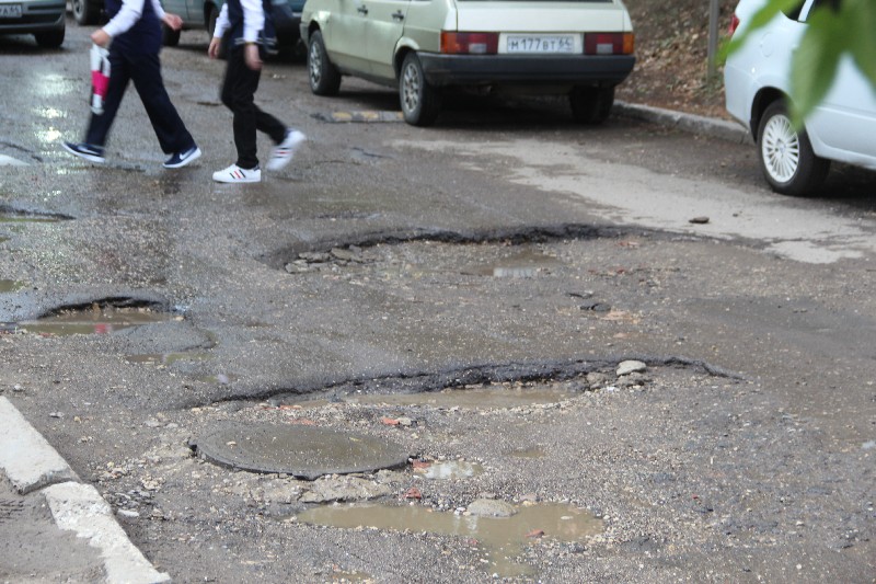 Участок дороги вдоль учебного заведения настолько разбит, что даже с разрешенной скоростью в 20 километров в час не рискнул проехать ни один водитель, предпочитая аккуратно переползать по многочисленным колдобинам.