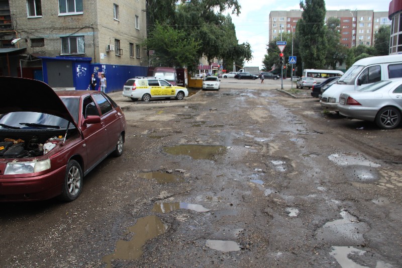 «Дорожный контроль» решил встретить наступление осени инспекционным выездом на улицу Осеннюю, что в Ленинском районе Саратова. На ней расположена школа №75, и в День знаний Осенняя изобиловала нарядными учениками и их родителями, лавирующими между лужами после небольшого дождя. Однако состояние проезжей части праздничным назвать было сложно.