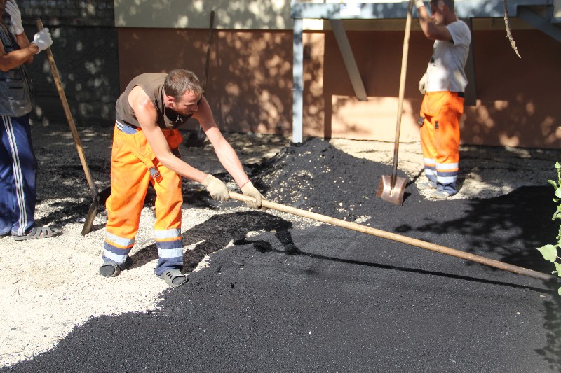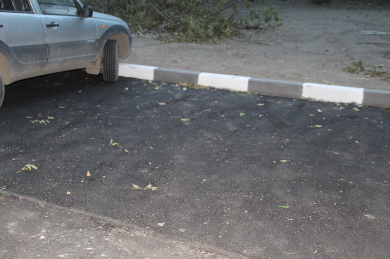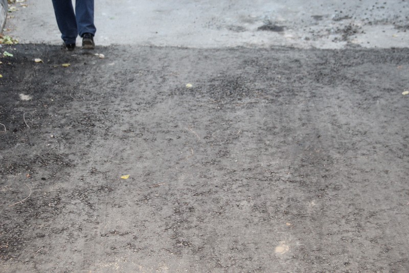 К моменту нашего визита асфальтирование дворовой территории завершилось, и силами администрации проводились работы по благоустройству территории. К качеству асфальта и его укладки вопросов у проверяющих не возникло, если не считать небольшого следа от катка, который подрядчик обязался немедленно устранить.