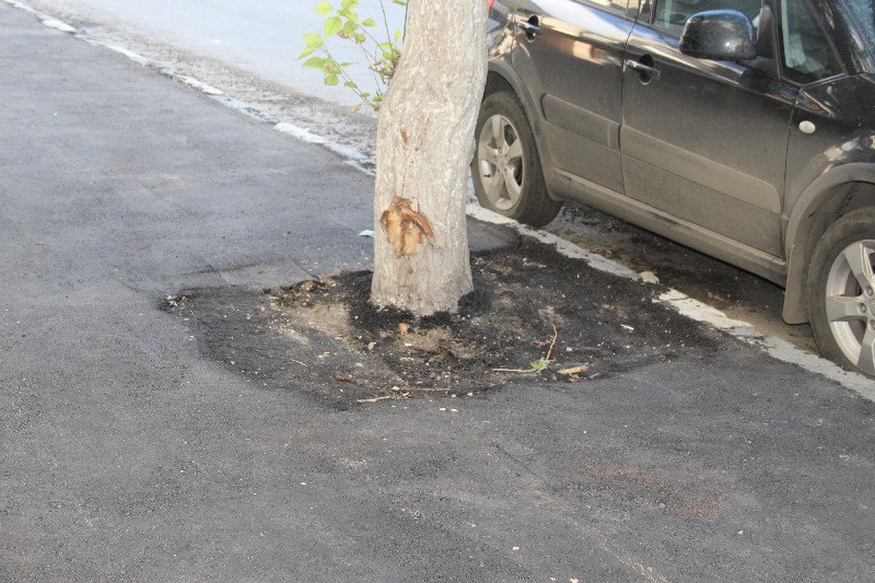 Дополнительно в рамках контрольного рейда «Дорожный контроль» решил посетить участок на Слонова между Степана Разина и Университетской. Там в рамках благоустройства компанией «Эко-Строй» по субподряду проводятся работы по ремонту тротуара. Подозрения в некачественно выполненных работах возникли накануне, во время рейда Общественной палаты Саратовской области. К моменту приезда «Дорожного контроля» на тротуаре как раз проводились работы по укладке асфальта. Общественники осмотрели выполненные работы и выявили целый ряд нарушений. Были обнаружены недопустимые СНИПом следы от катка, на готовом участке имелись технологические продольные и поперечные трещины, свидетельствующие либо о недостаточном количестве вяжущего вещества в асфальтобетонной смеси, либо о некачественном основании, на которое положили асфальт. В ряде мест были замечены проседания полотна, где образовывались лужи. Все замечания были высказаны начальнику участка организации, выполняющей работы.