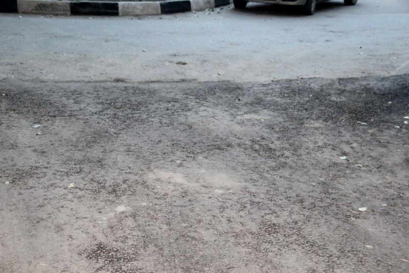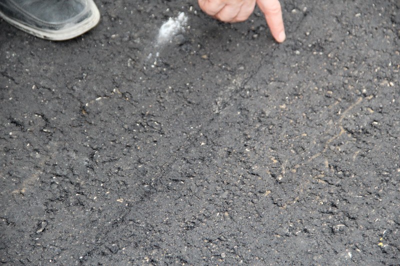 Кроме того, в асфальтобетонном покрытии обнаружился раздавленный кусок песчаника, что может поставить под подозрение качество использованной асфальтобетонной смеси.