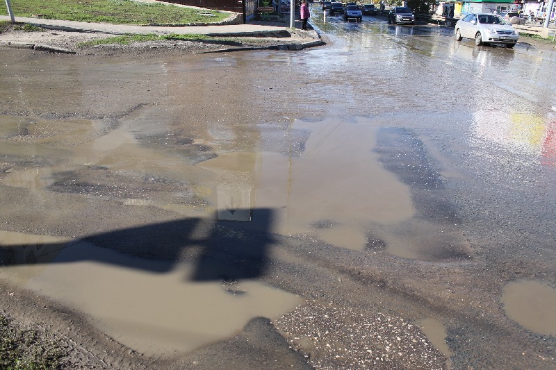 Текущая вода размывает асфальт на улице Чехова и ниже находящейся Тархова, скапливаясь в образовавшихся ямах. Под слоем воды водители не могут определить глубину выбоин, вынуждены активно маневрировать на одной из самых оживленных улиц микрорайона, в то же время на этом участке дороги проходит несколько маршрутов общественного транспорта: автобуса №11 и маршрутных такси № 30, 41, 8а.