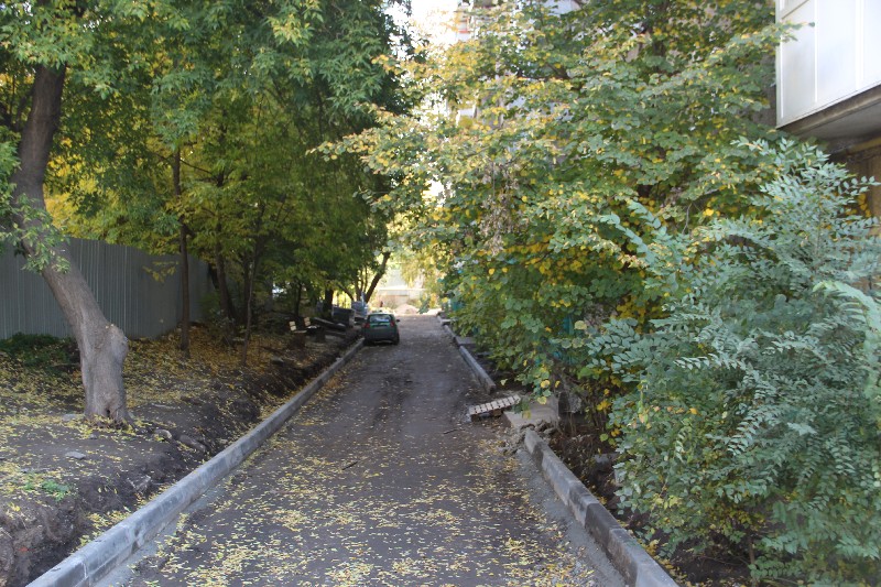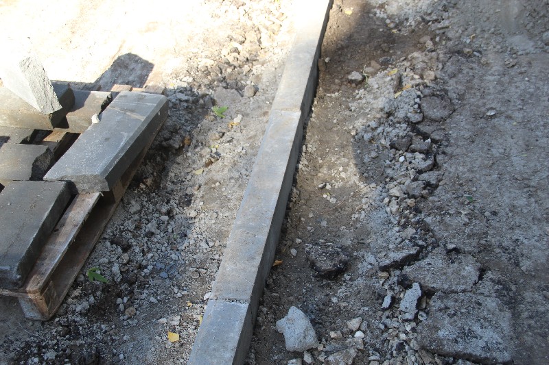 Работы здесь замерли на установке бордюрного камня, при этом также капитально установленном, как и в других дворах этого подрядчика. Надеемся, что найденные сколы будут заделаны к окончанию работ, а выступающие части бордюрного камня срезаны.