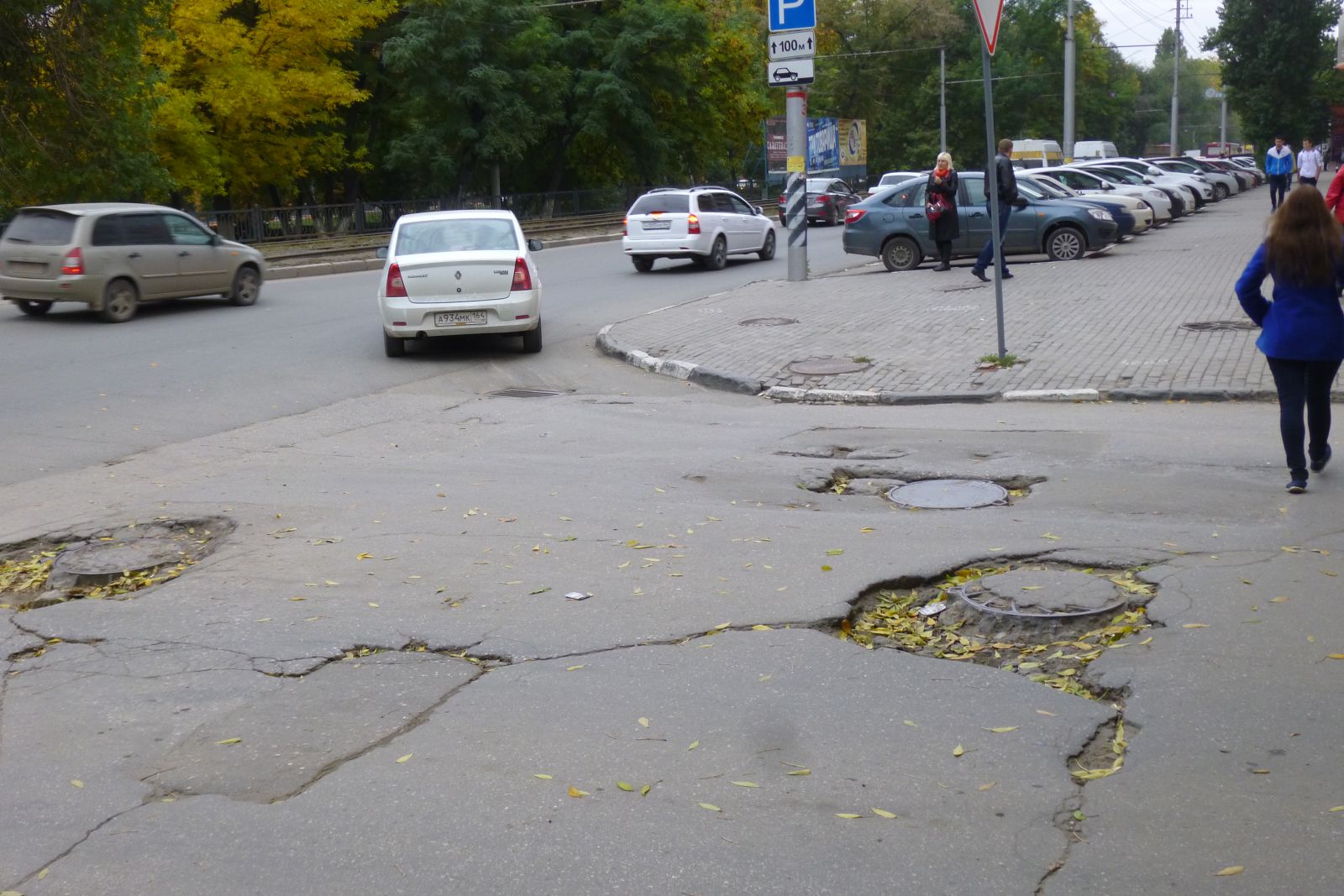 Преодолев Вольскую, «Дорожный контроль» обратил внимание на просевшее после вскрышных работ дорожное полотно у дома на Зарубина, 84/90. Посреди улицы, буквально напротив центральной части дома расположился завалившийся на бок люк с незафиксированной крышкой, гремящей после проезда машин. На перекрестке Чапаева/Зарубина, напротив 95-го дома, посреди пешеходного перехода через Зарубина находится люк, начавший проседать вслед за окружающим его покрытием.