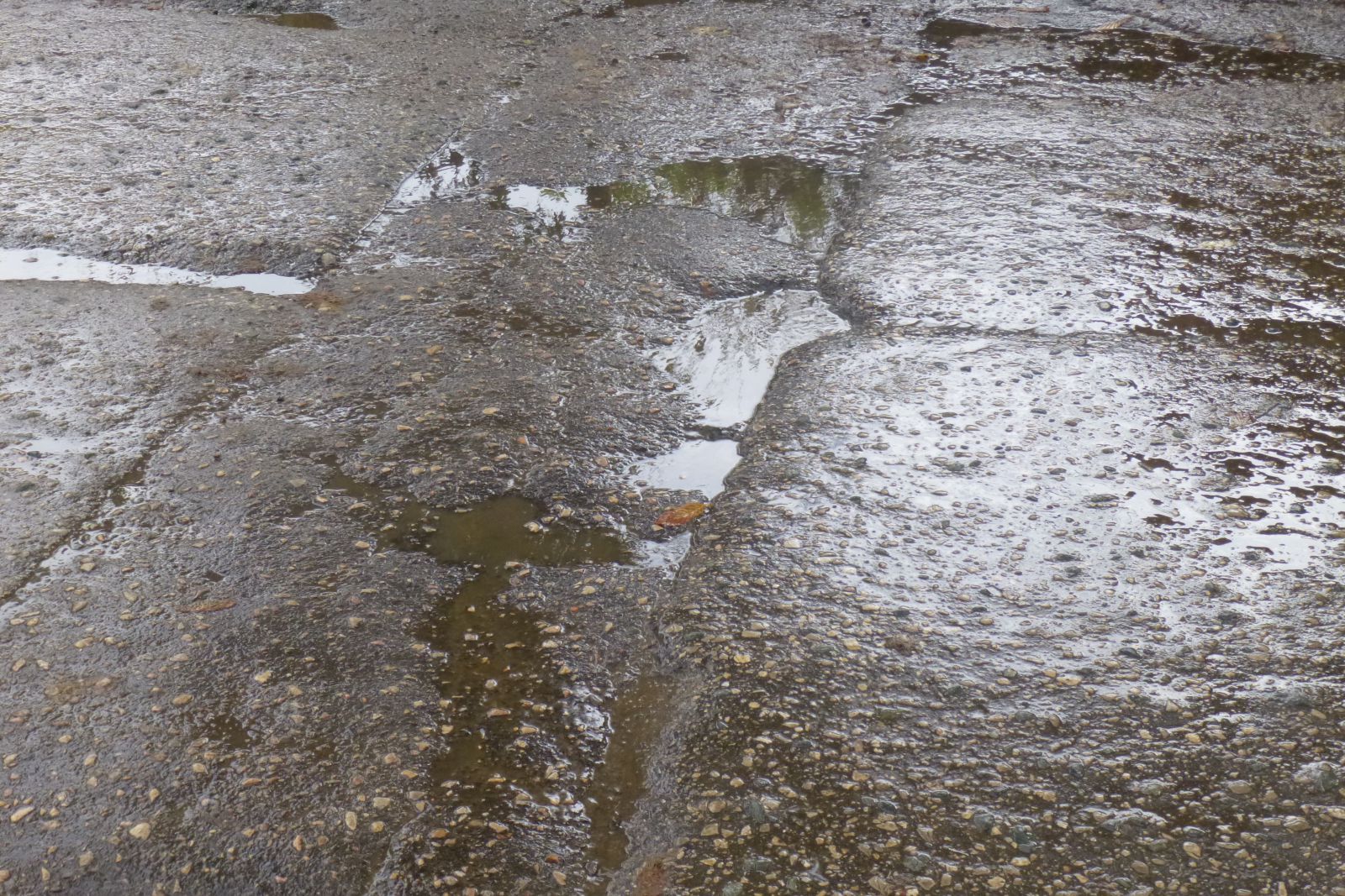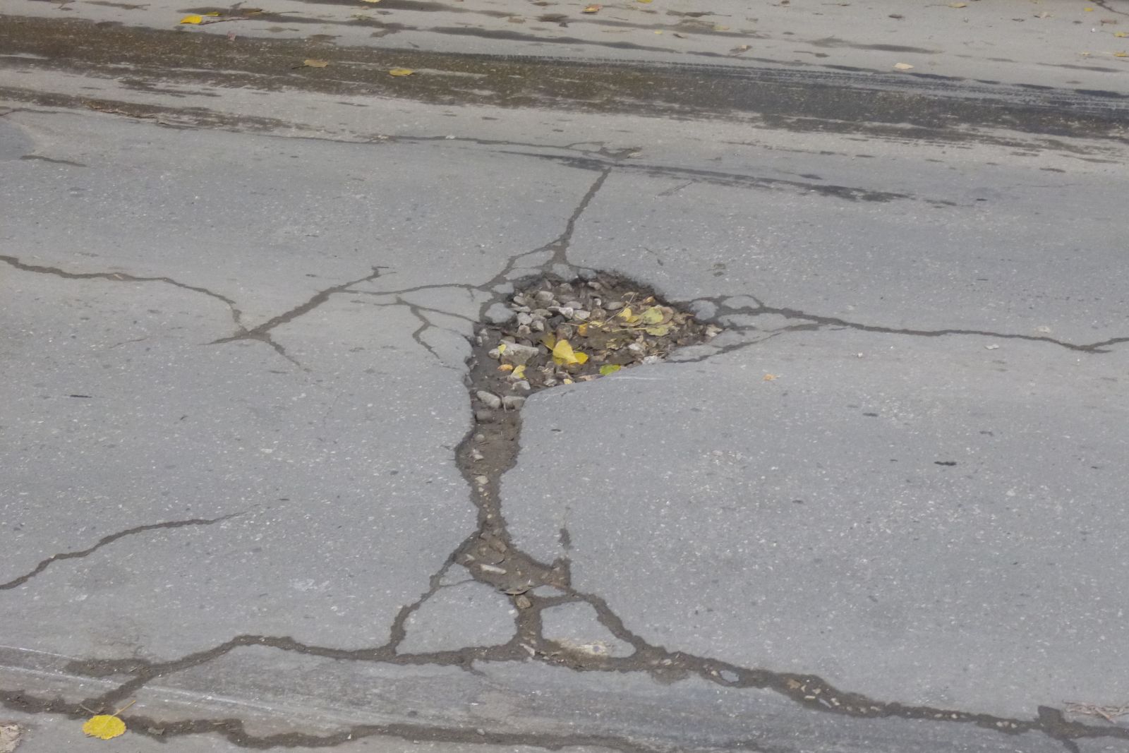 У ТК «Ваш дом» оказалось, что дорога перед ним обладает изобилием ям и выбоин, нашлось место и просевшему дорожному полотну. У пешеходного перехода через Зарубина напротив дома №143/147 расположилась яма, из которой вырывается на свободу щебень.