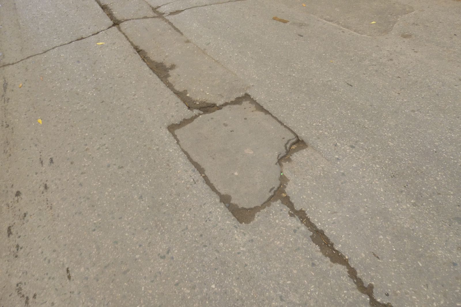 Люк, обрамлённый ямой со стороны 22-го дома и находящийся посреди полосы, ведущей в сторону вокзала, может проверить на внимательность немало автолюбителей на и без того малоосвещенной улице. Небольшие ямы и трещины расположились от 25-го до 33-го домов. Часть из них образовались на местах начавших проседать «заплаток».