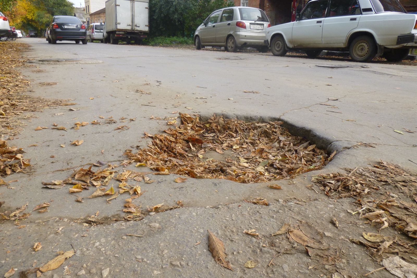 На перекрестке со Степана Разина автолюбителей, поворачивающих на Зарубина, подстерегает незаметная и очень неприятная яма.