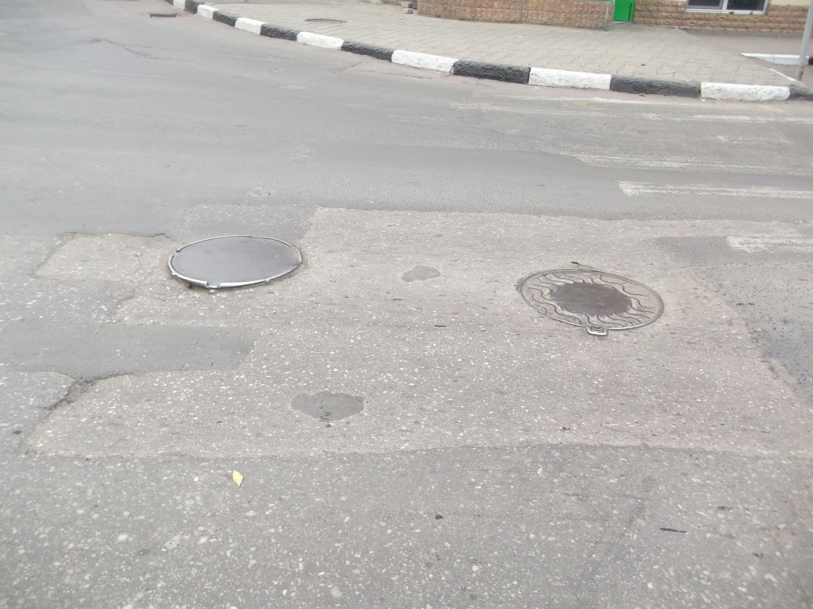 Перекресток Лермонтова/Первомайская своей кривизной под копирку повторяет предыдущий. Солируют тут просевшие далеко за допустимые ГОСТом 2 см люки.