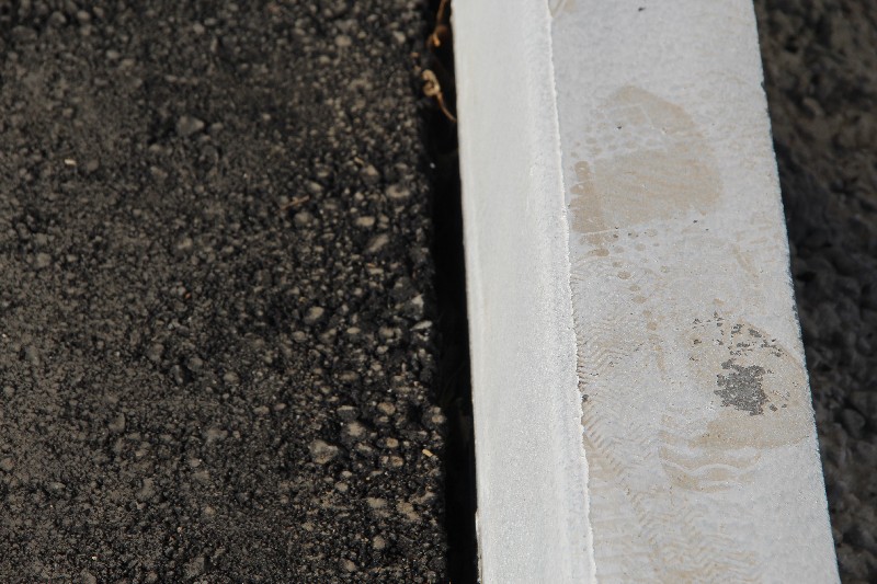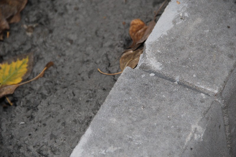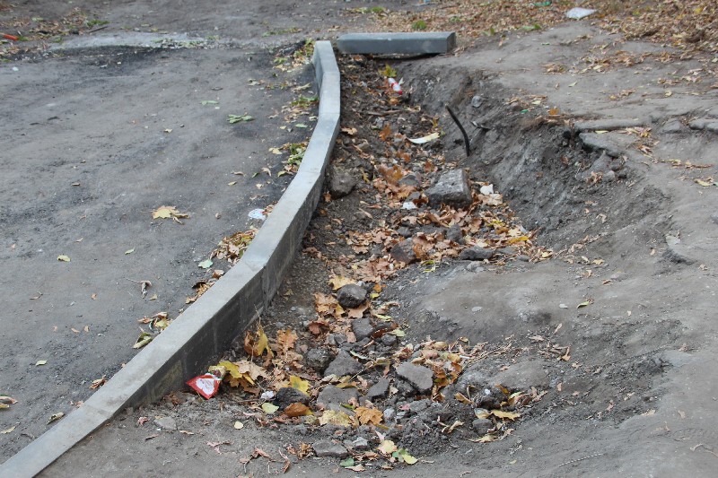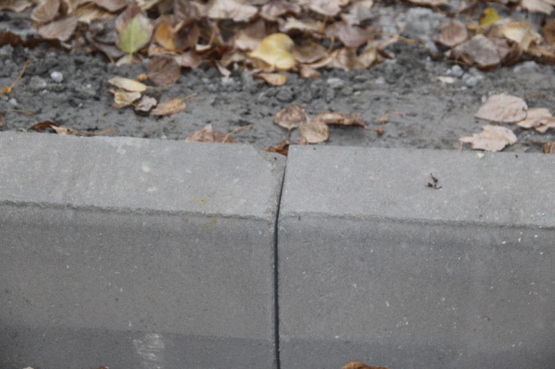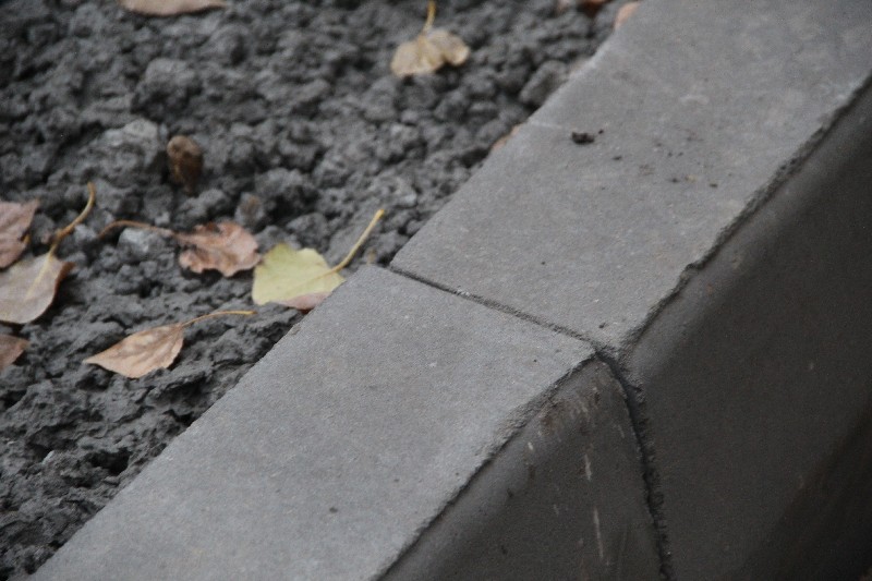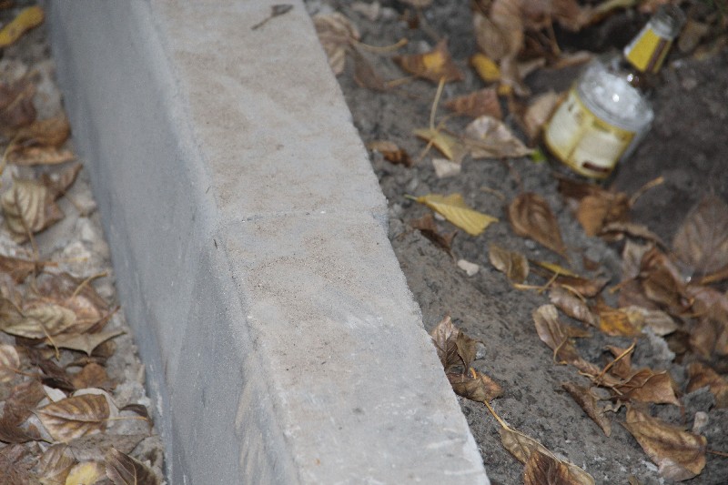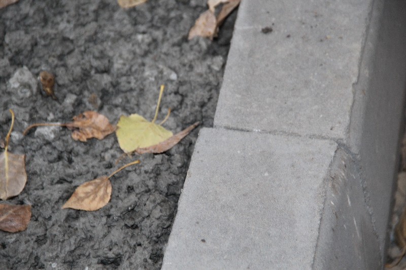 К сожалению, сказать, что бортовой камень поставили ровно, нельзя, и здесь подрядчику еще также предстоит много работы по приданию ему геометрии без выступов и устранению сколов.