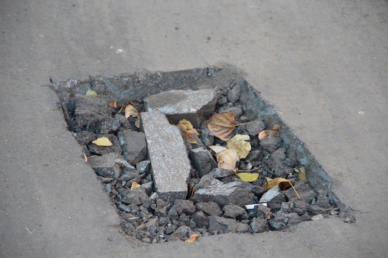 Ну, и напоследок — место взятия проб керна, которое уже по традиции не заделывают по всему городу.