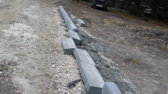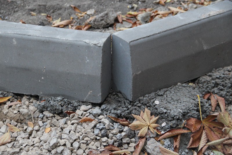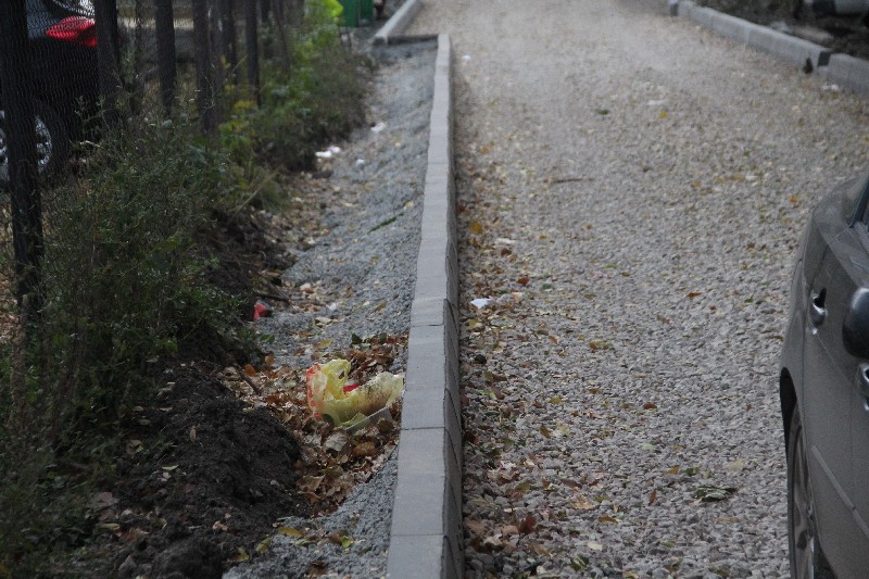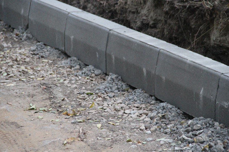 Со стороны дороги бортовой камень бетоном крепить вообще не собираются, возможно, чтобы легче было переделывать некачественную работу. В некоторых случаях видно песчаное основание, на которое водрузили бордюр.