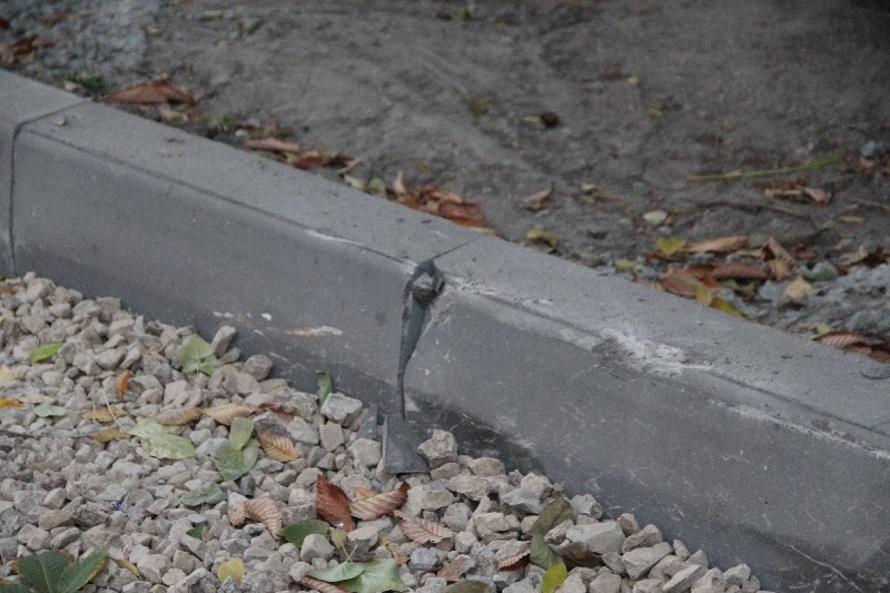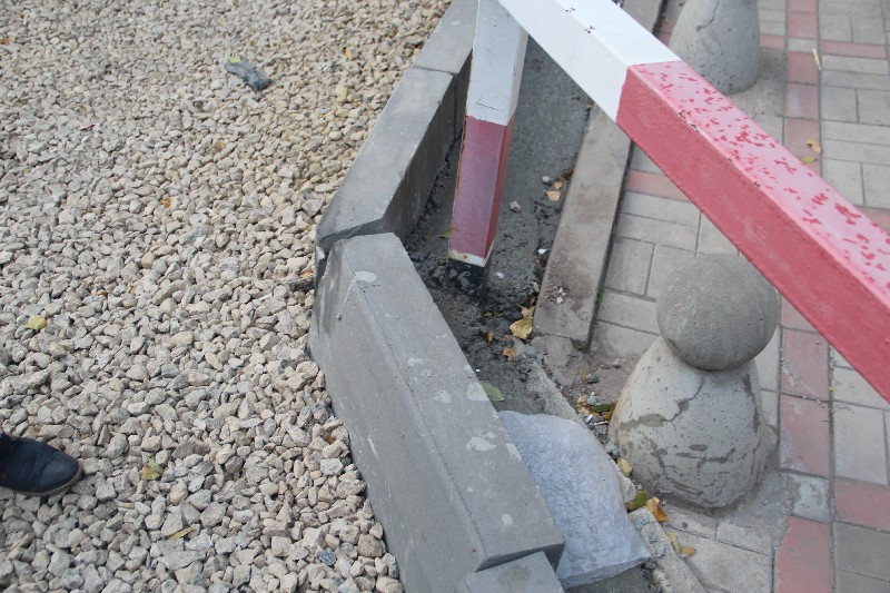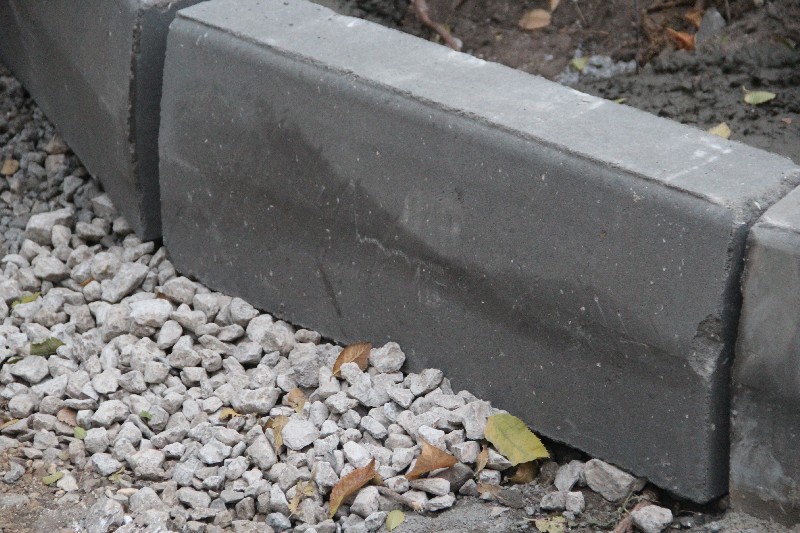 Бортовой камень у дома 2-д, который устанавливался с нарушениями СНиП по благоустройству, без обеспечения бетонного основания, в некоторых местах укрепили новыми порциями бетона, при этом выпадать он не перестал.