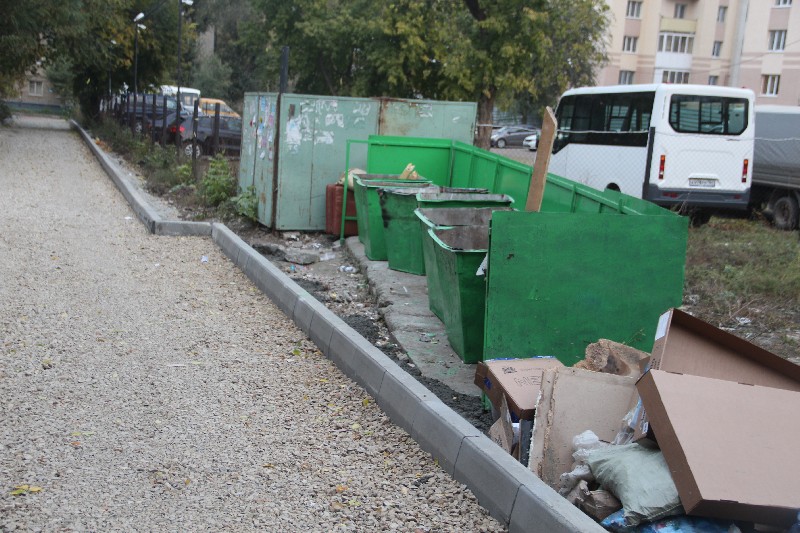 Во-вторых пожилые жители стали испытывать огромные проблемы с доступом к мусорным бакам. Сейчас они ограждены непреодолимым для стариков высоким бордюром и ямой после него, а еще площадка стоит под углом, что создает трудности мусоровозу.
