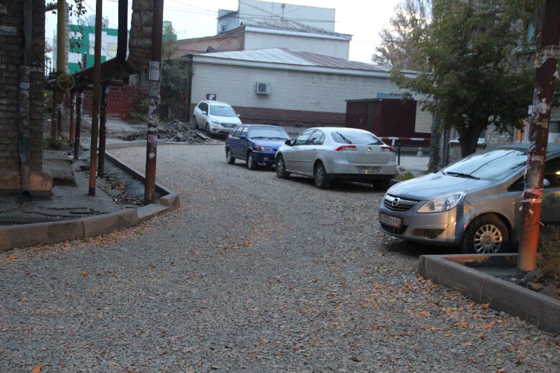 Аналогично ситуации с двором на Рабочей, 122, на Орджоникидзе встает вопрос обустройства парковочной территории на открытом грунте, откуда будет растаскиваться грязь по всей дворовой территории. Отметим, что после публикаций «Дорожного контроля» администрацией Фрунзенского района подобный вопрос решился в пользу жителей. Надеемся, что и в Заводском районе это не останется без внимания.