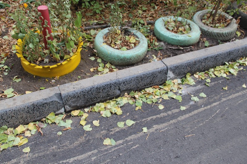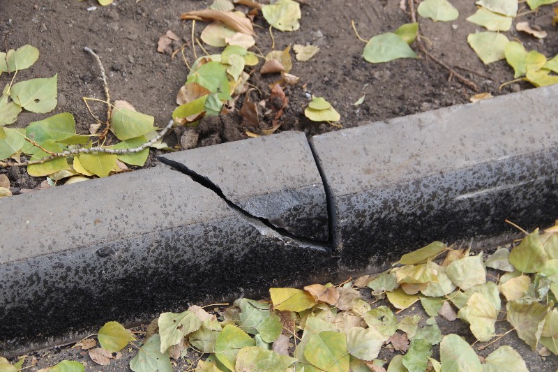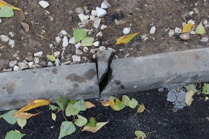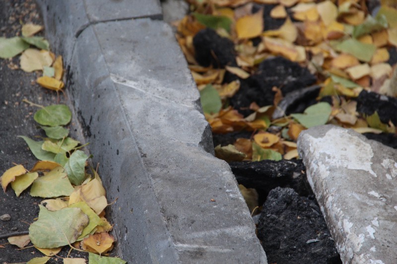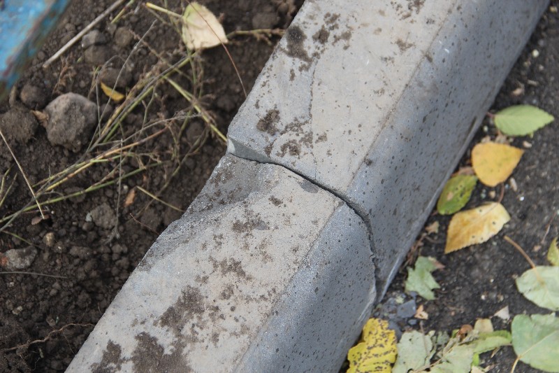 Во дворе на Осипова обнаружены колотые бордюры и следы дорожной техники
