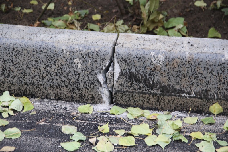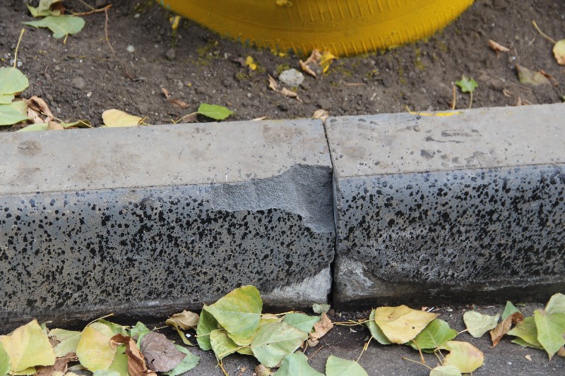 Не устранен крупный скол бортового камня, который был обнаружен во время предыдущей инспекции «Дорожного контроля» на участке, ведущем к Осипова, 20.