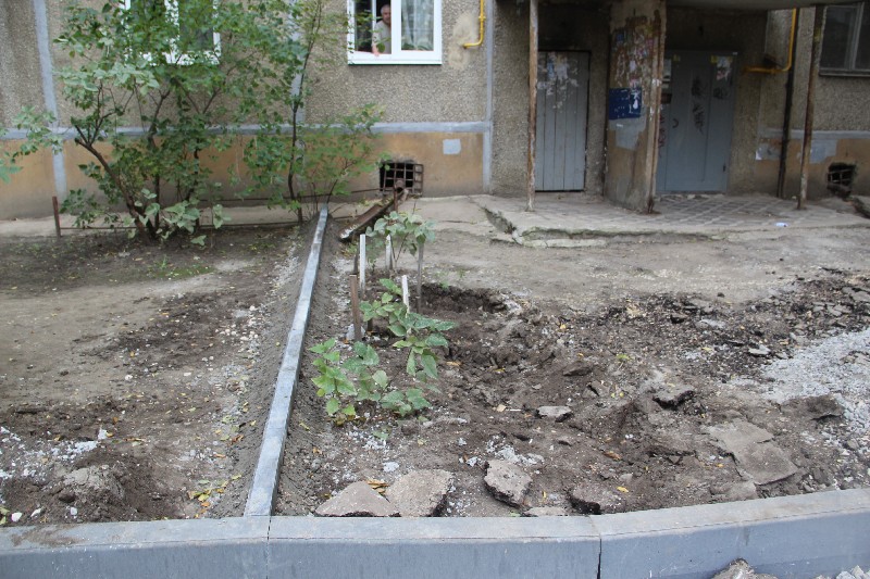 Во дворе на Тархова, 25/23 идет подготовка к укладыванию щебня. При этом дорожной техникой был поврежден люк смотрового колодца, недавно поднятый рабочими. Бортовой камень установлен так, что делает затруднительным перемещение по пешеходным дорожкам, фактически преграждая путь, превращая его в труднопреодолимое препятствие для пенсионеров и людей с колясками. А у подъезда №2 дома №25/23 жителей беспокоит судьба посаженных сиреней, которые неожиданно оказались по другую сторону бортового камня.