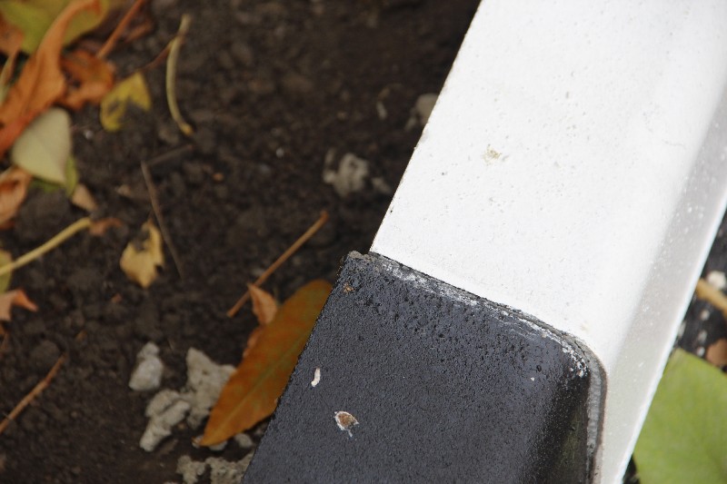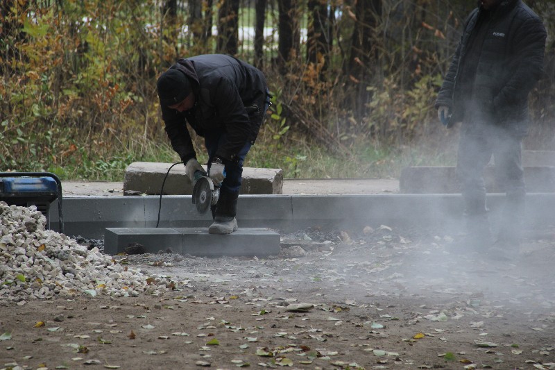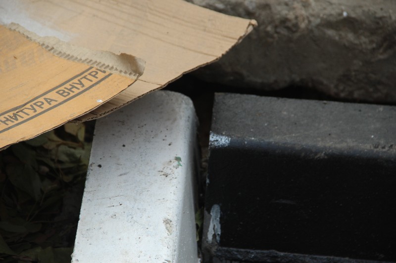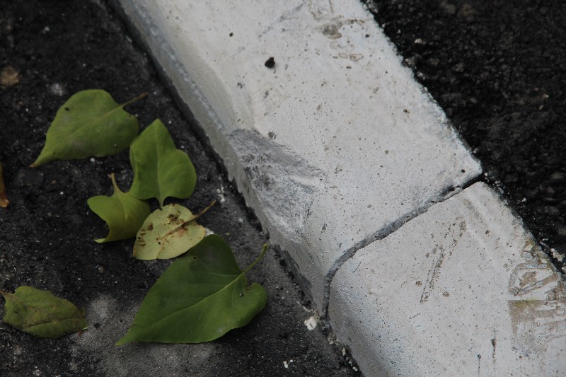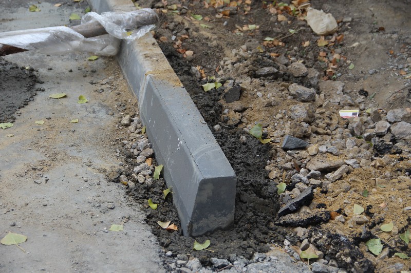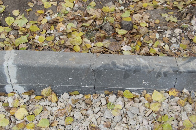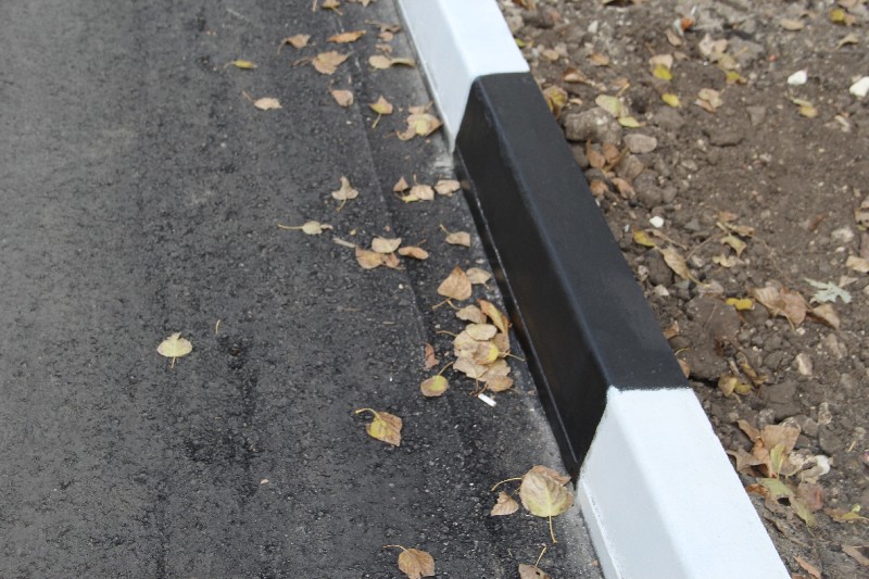 Особо больших сколов на бортовом камне не обнаружено, но на некоторых камнях дефекты закрасили.