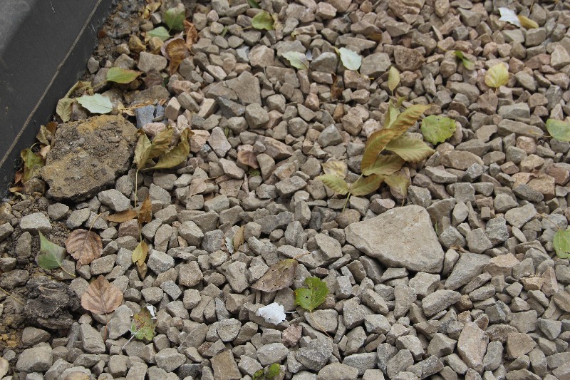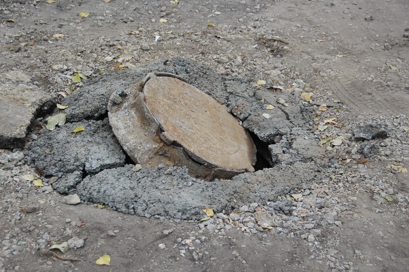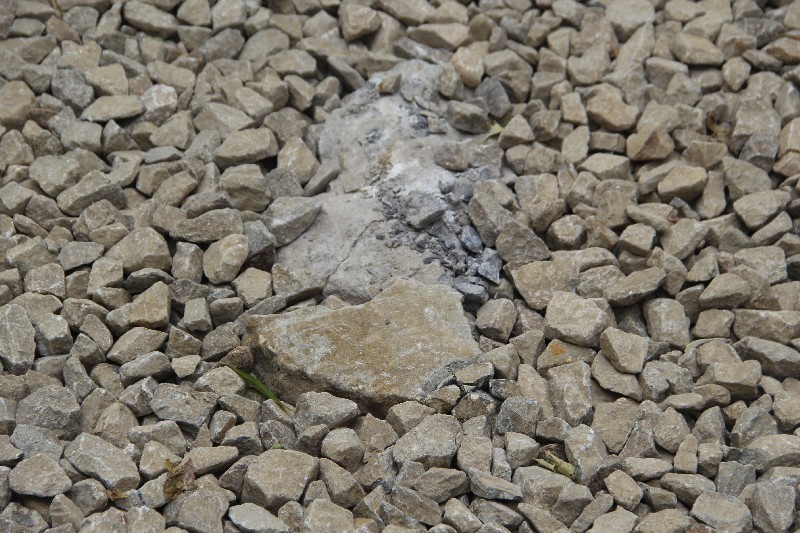 За прошедшее с последнего нашего визита время из выявленных нарушений были устранены только вывалившиеся бортовые камни и поднят люк у первого подъезда. При этом при укладывании щебеночного основания техникой были расколоты новые бордюры. Также в уложенном щебне в качестве основания присутствуют камни крупной фракции, не предусмотренной контрактом, делая основание неоднородным. Во время инспекции как раз привезли для укладки асфальтобетон, температуру которого никто не поспешил проверить. При этом работы с горячей смесью при температурах в районе нуля требуют значительно более ответственного подхода и внимания.