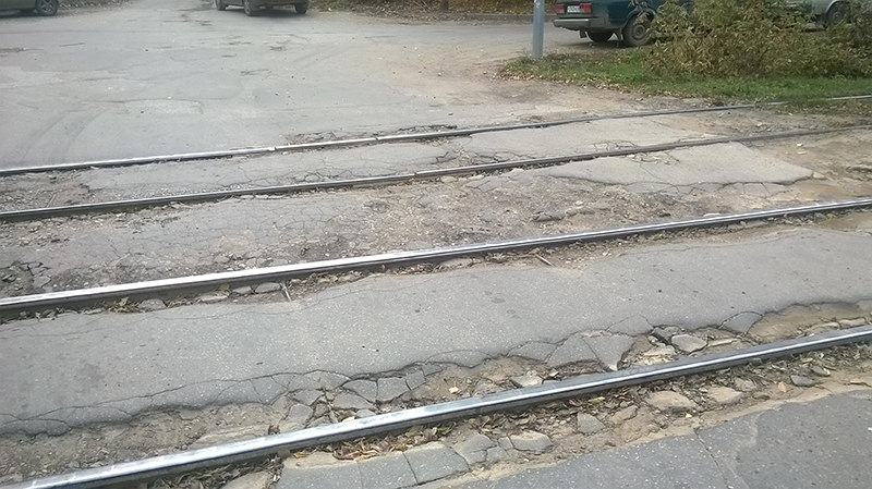 В Ленинском районе Саратова проезд через трамвайные пути превратился в постоянную опасность для автомобилистов. Водители испытывают серьезные трудности при попытке пересечь рельсы в микрорайоне Молодежный, так как дорога буквально усеяна ямами.