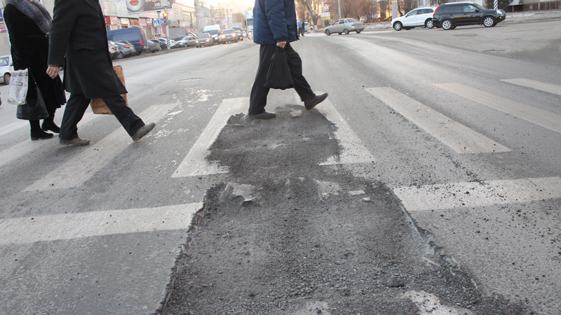 На Чернышевского машины раскопали яму на пешеходном переходе