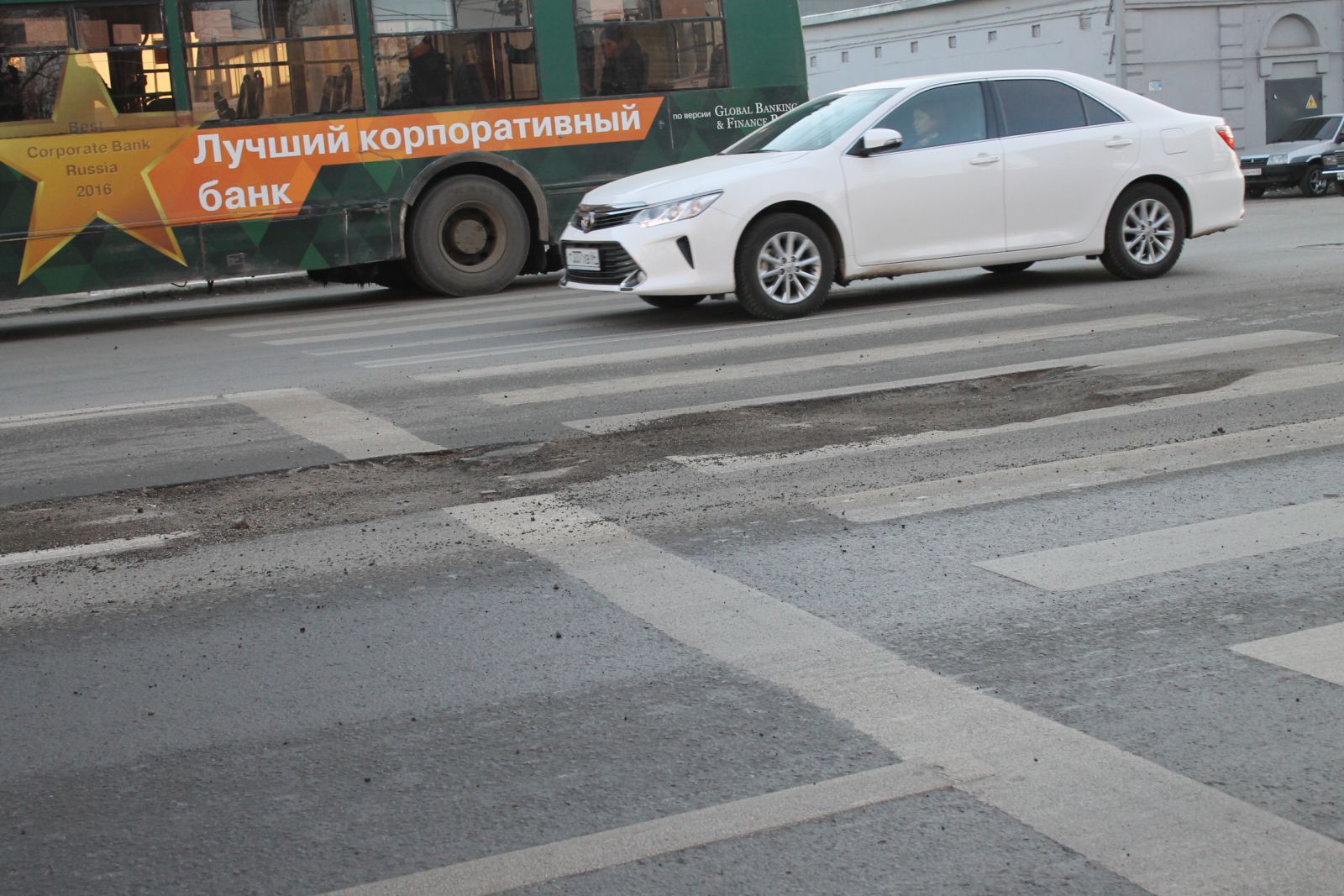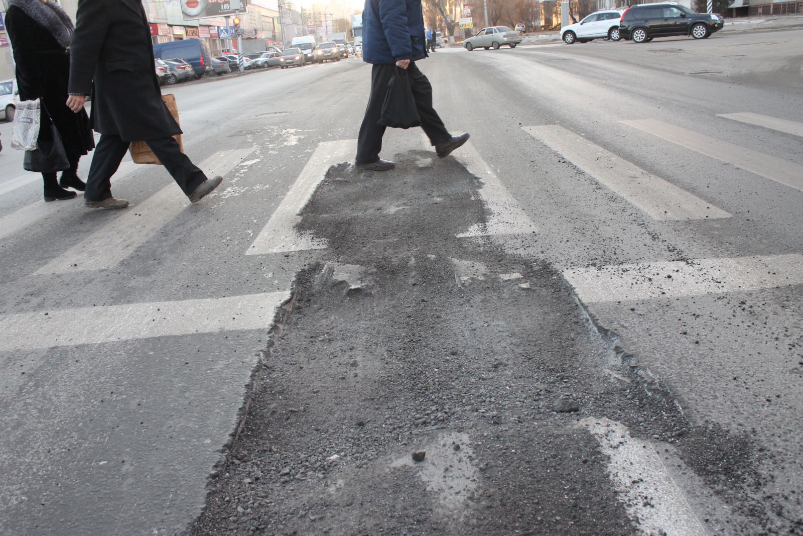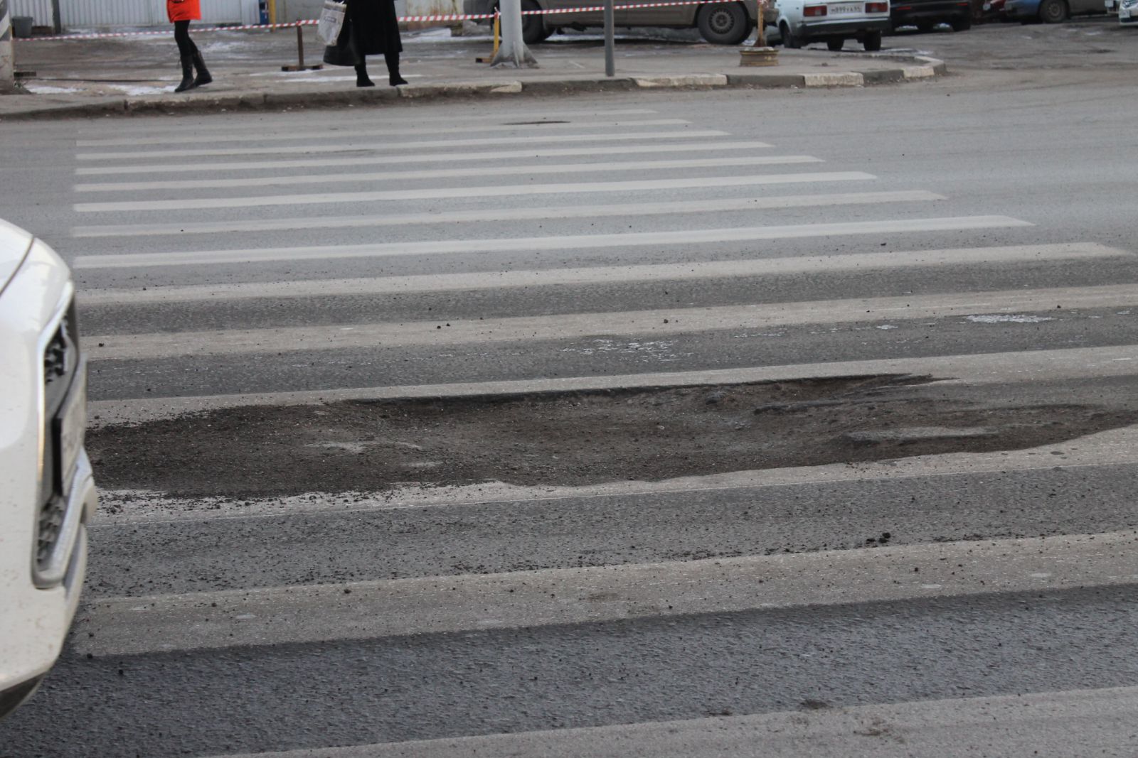 В «Дорожный контроль» обратился житель города Саратова, сообщивший о том, что на свежеотремонтированной улице Чернышевского, рядом с пересечением со 2-й Садовой, на пешеходном переходе образовалась яма.