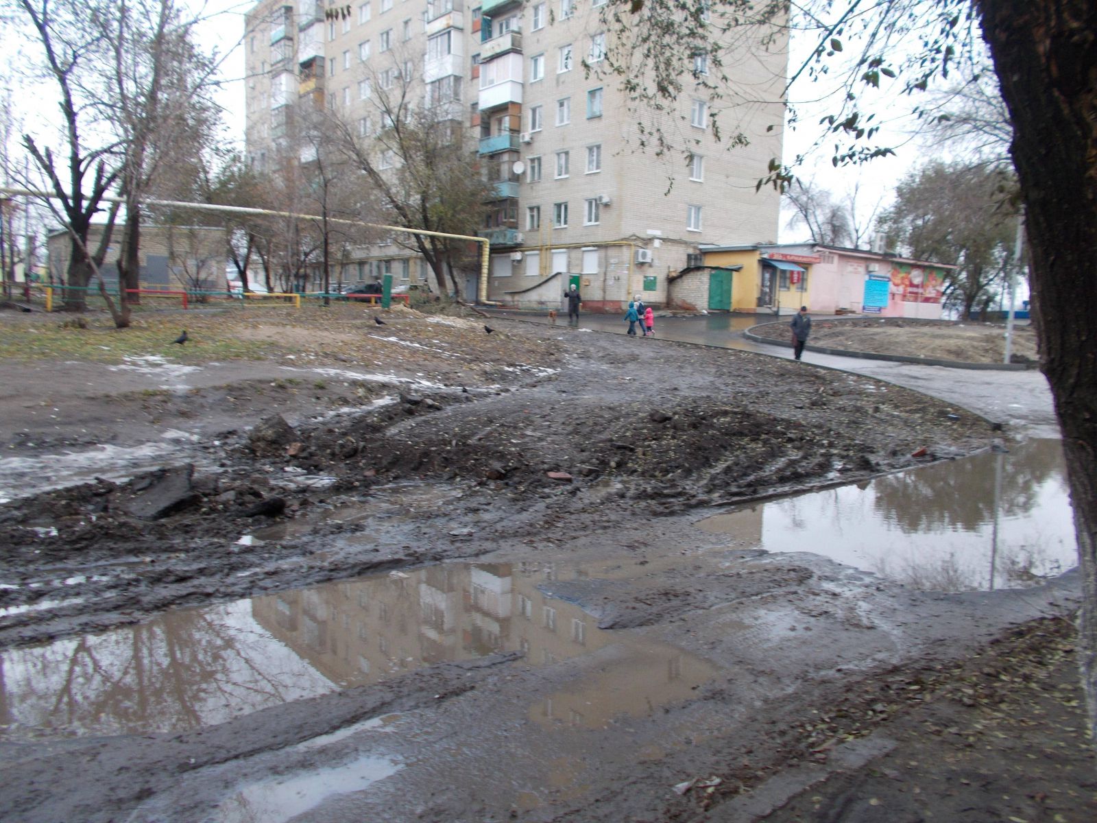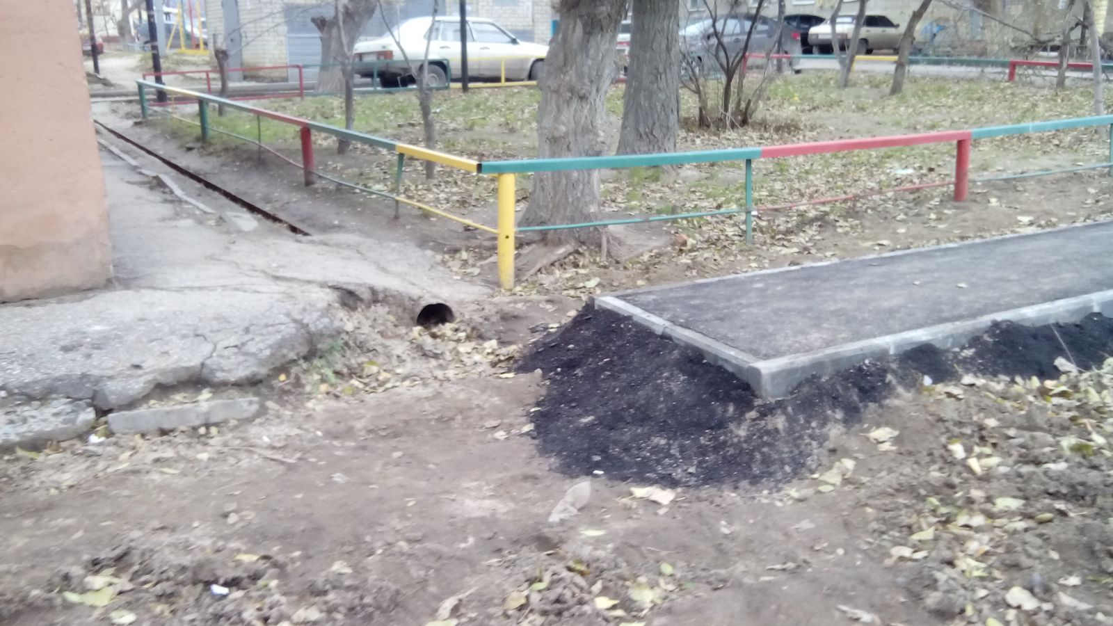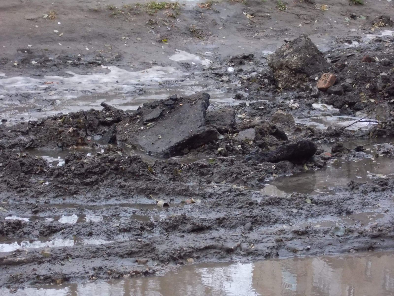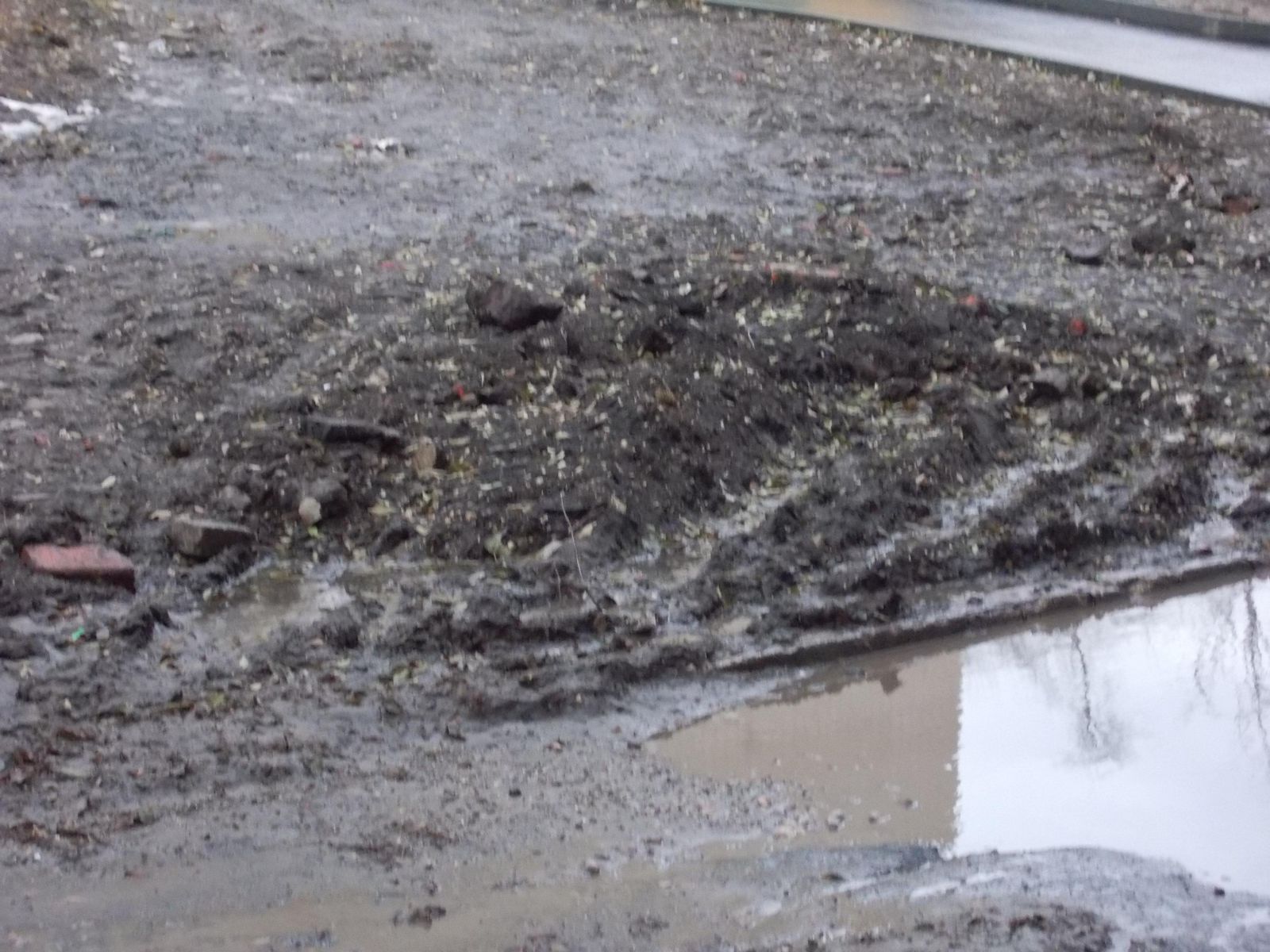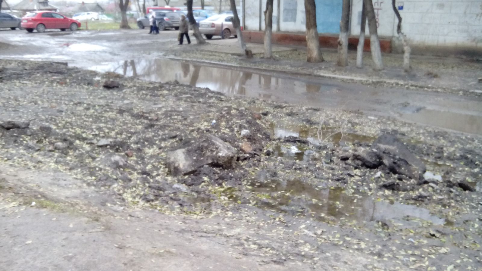 Не было предусмотрено водоотведение, в следствии чего затапливается соседний двор дома №19, куда также был вывален строительный мусор, оставшийся после вскрытия старого асфальтного покрытия. Скорее всего, это было сделано с целью экономии средств и времени подрядчика, но теперь жильцам этого дома без труда и без плавательного средства не пройти к своим подъездам .