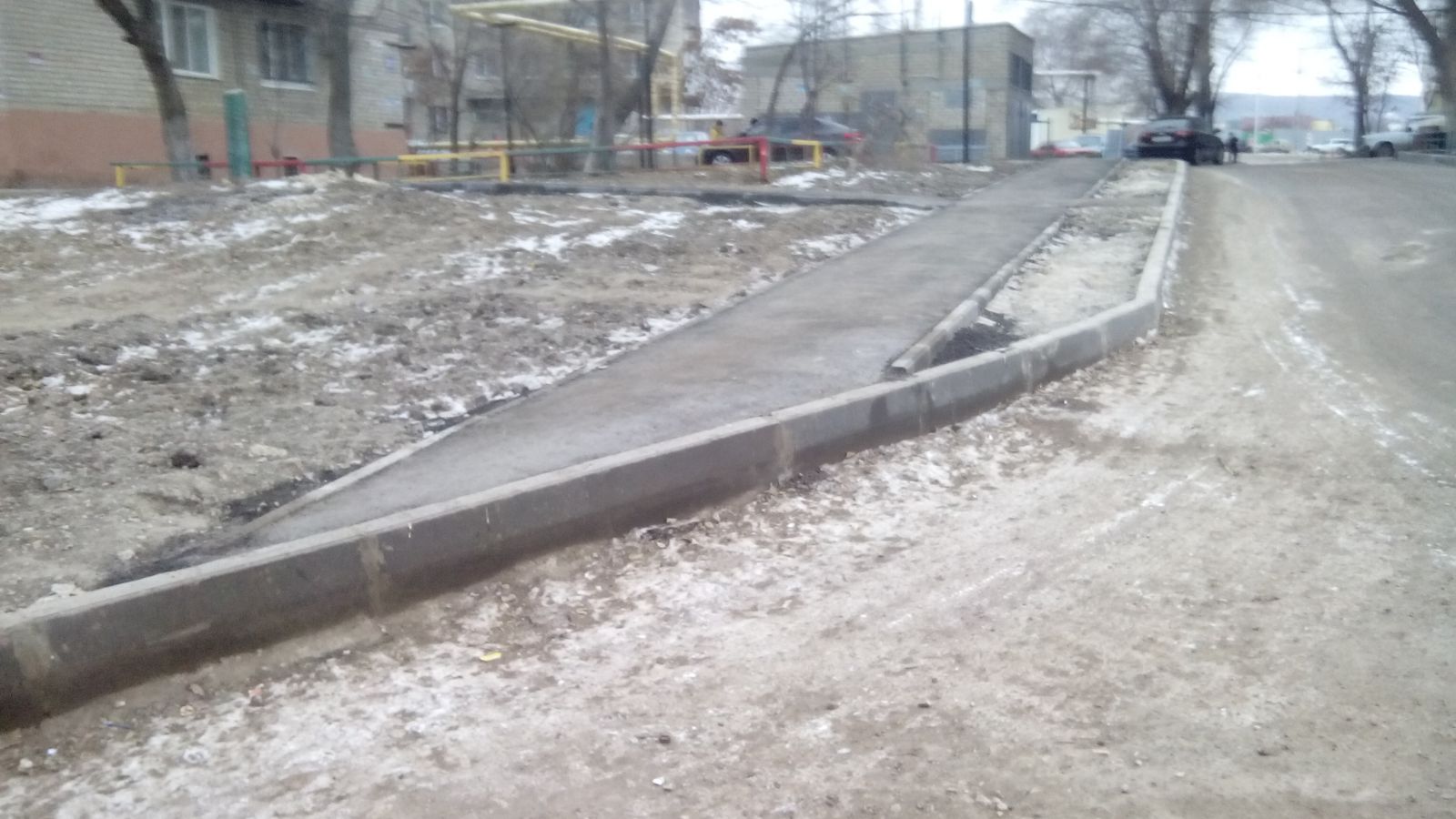 В «Дорожный контроль» обратились жильцы домов по улице Тульской, 21 и 21а Заводского района Саратова, где в этом году проходили ремонтные работы по программе «Наш двор». Жители жалуются, что после проведения ремонта дворовой территории часть работ осталась незавершенной. Установленный бортовой камень так и не был окрашен, да и укреплен он только с одной стороны. На въезде/выезде со дворов не переложили асфальтобетонное покрытие, оставив прежние ямы, несмотря на то, что бортовой камень в том месте установлен вплоть до основной улицы. Также не были предусмотрены переходы для пешеходных дорожек, бортовые камни установлены во весь рост, несмотря на то, что в местах подъема они должны быть уложены плашмя для удобства поднятия/заезда людей с колясками и для пожилых граждан, а одна дорожка и вовсе не доходит до территории дома, обрываясь. Она так возвышается над окрестностью, что взобраться на нее сможет не каждый.