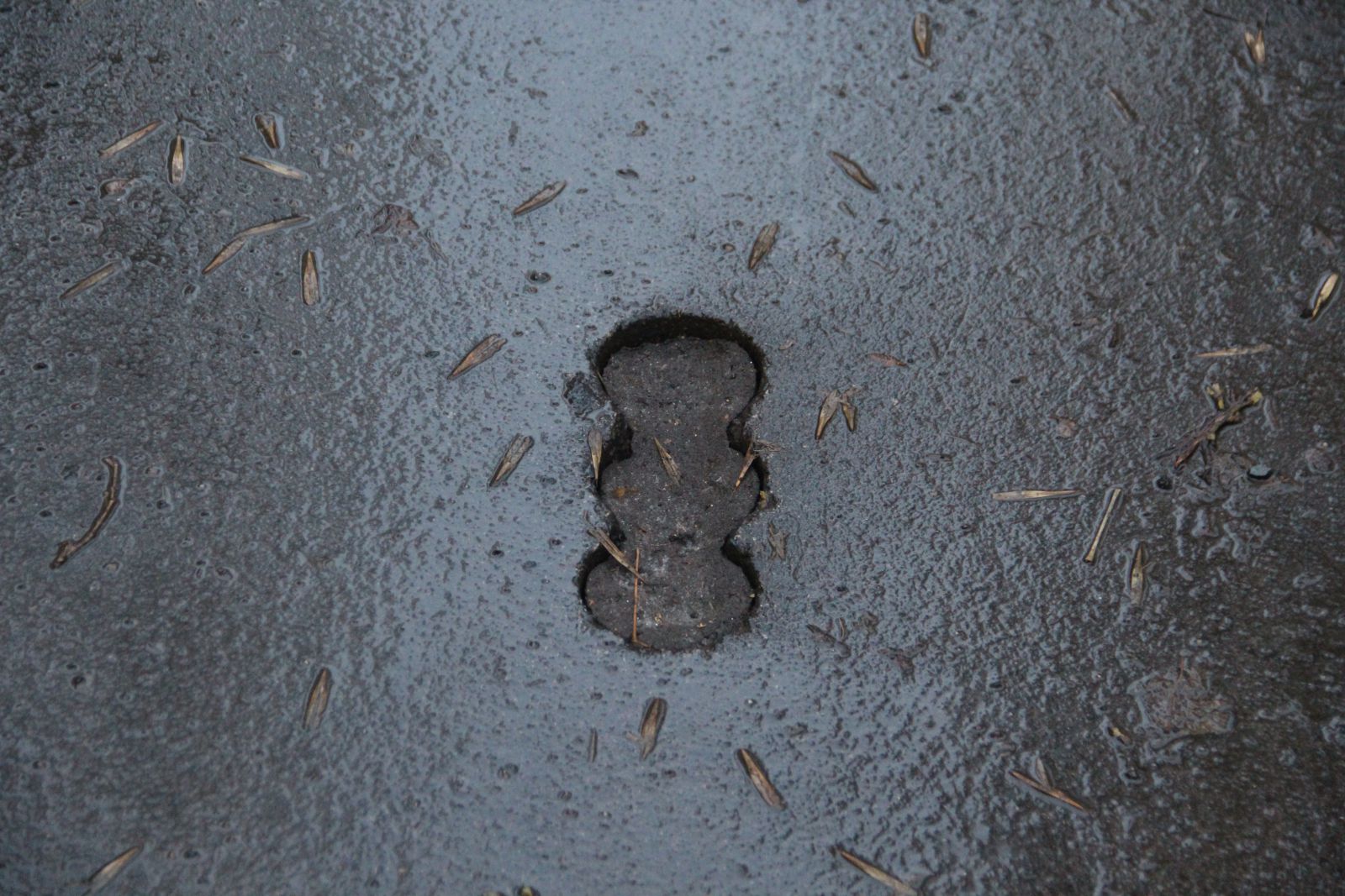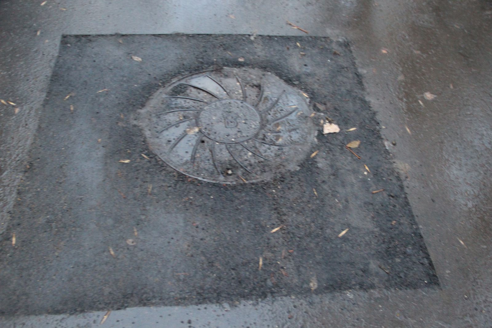 Также во дворе заменен расколотый дорожно-строительной техникой бортовой камень, аккуратно поднят люк смотрового колодца. Из недоделок остаются незаасфальтированные места вырезок проб асфальтобетонного покрытия. Через них вода в оттепель продолжает насыщать основание дворового проезда.