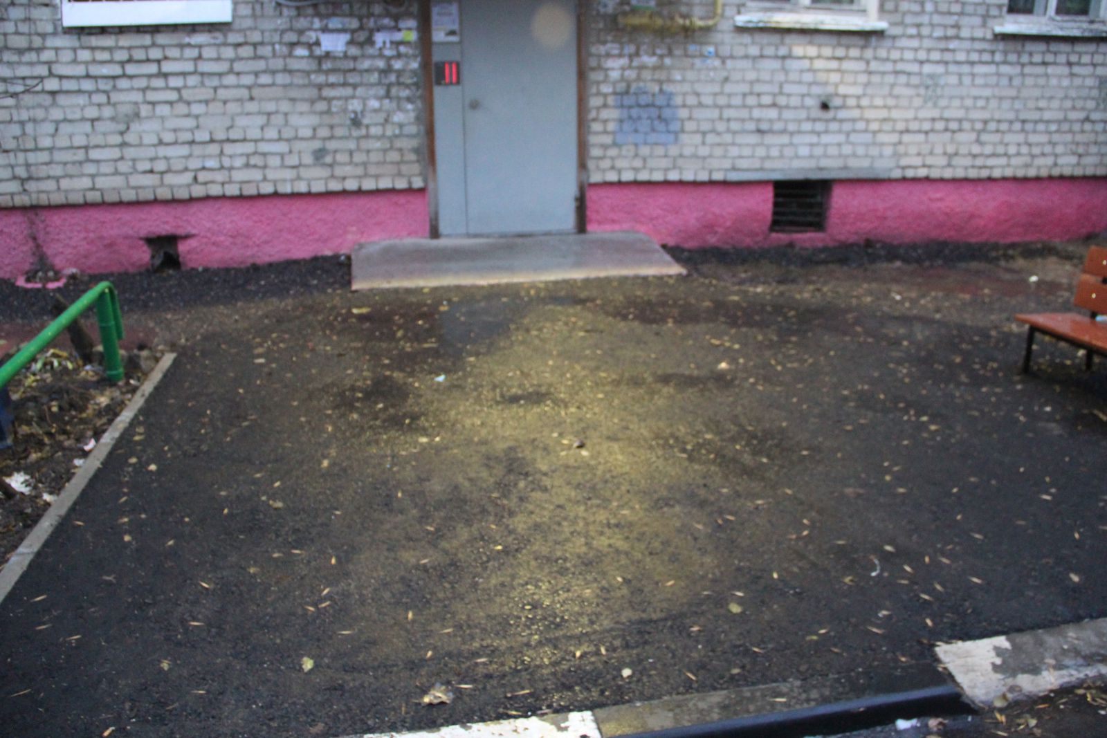 Кроме этого пожилые жители дома сетовали на необустроеность подходов к подъездам и отмостки вдоль дома, которая заодно выполняет функцию тротуара и пребывает в неудовлетворительном состоянии. Сейчас подходы к подъездам заасфальтированы, установлены новые лавочки, а отмостка отсыпана асфальтной крошкой.