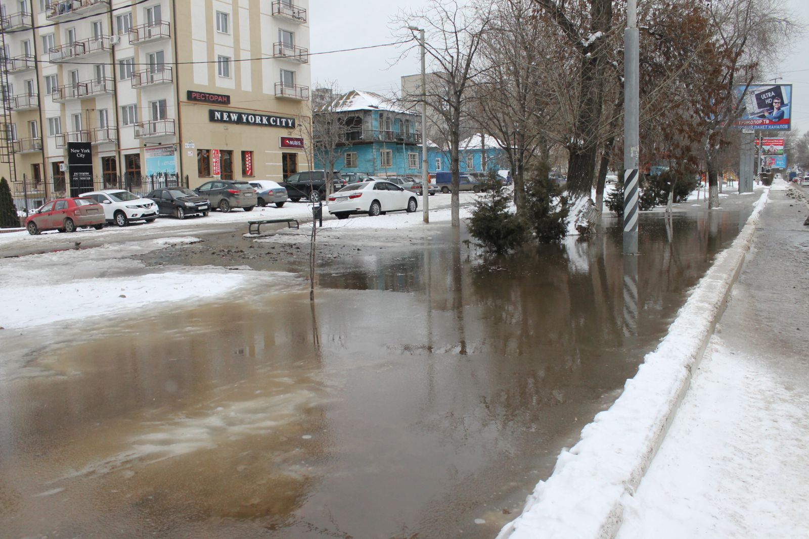На Большой Горной затопило сквер и дорогу