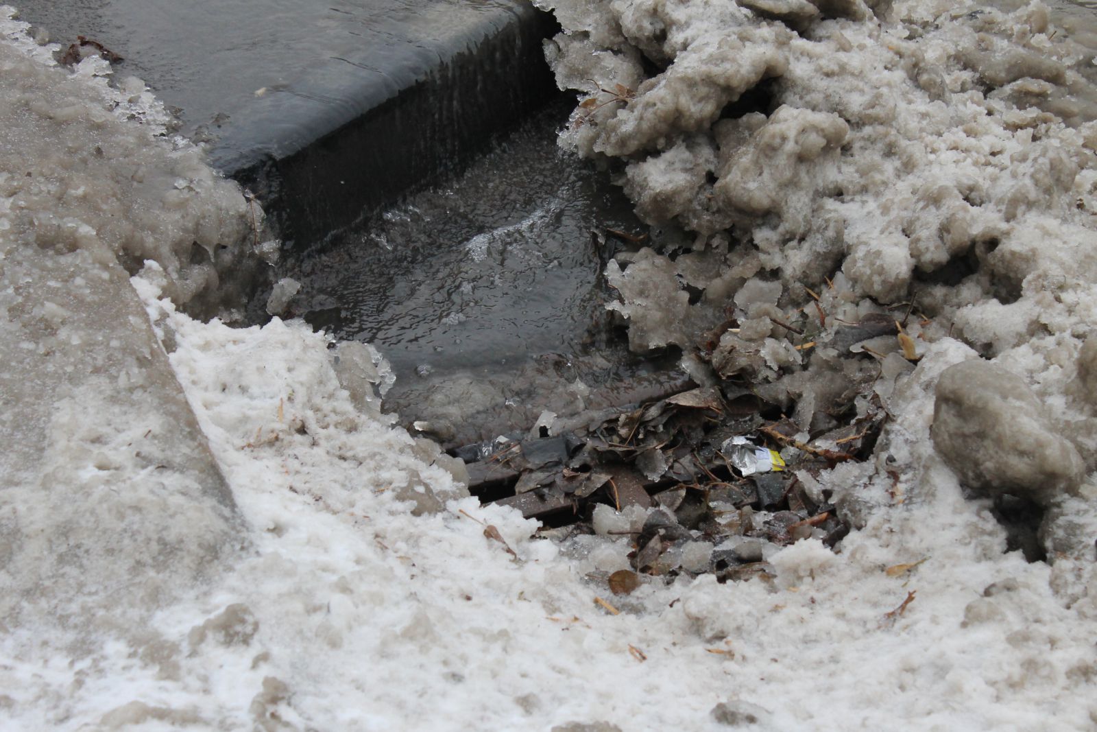 Ливневая канализация, расположенная на затапливаемом участке, пока со своей задачей не справляется, возможно, из-за забитых решеток дождеприемников. Излив происходит через территорию сквера, который затоплен полностью. Преодолев автомобильную дорогу по Б. Горной, поток устремляется на тротуар, где препятствует передвижению пешеходов. На Б. Горной наблюдается небольшой затор из-за того, что автомобилисты не рискуют быстро проезжать по затопленной части дороги.
