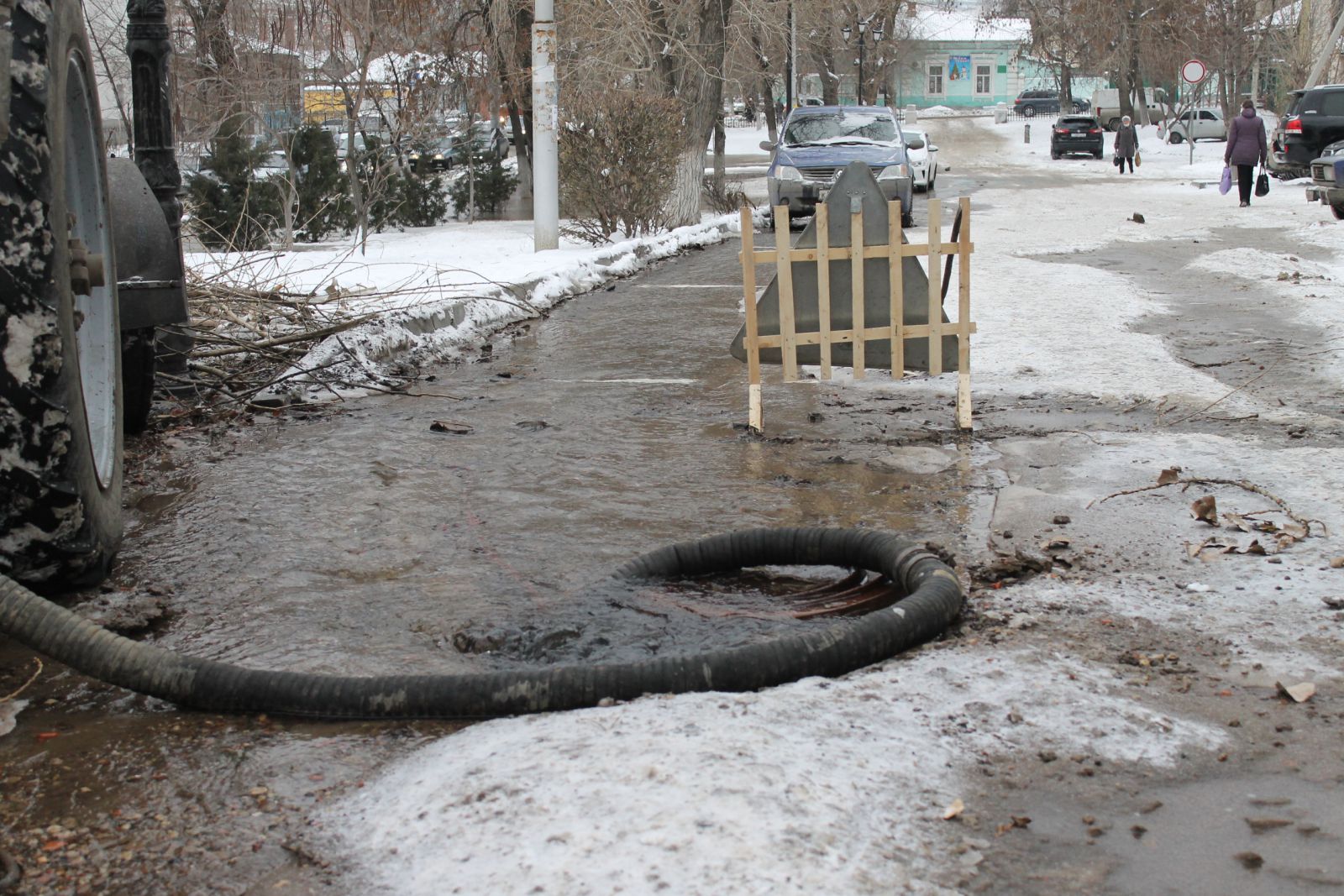 На отрезке улицы Б. Горной, между Мясницкой и Радищева, произошла очередная авария на сетях «Водоканала». Пока сотрудники предприятия пытаются обуздать стихию, вода затопила сквер Зои Космодемьянской, проезжую часть по Б. Горной и устремилась на территорию социально-экономического института.