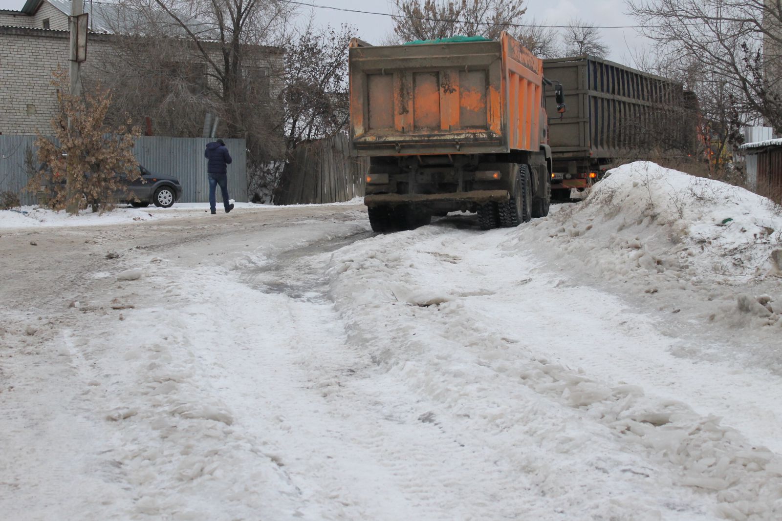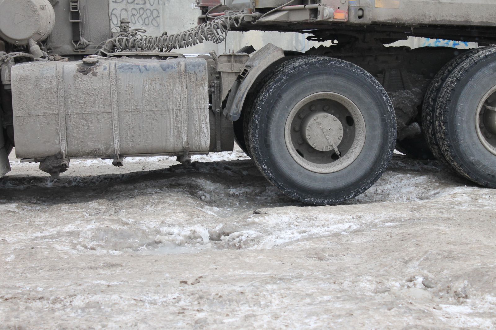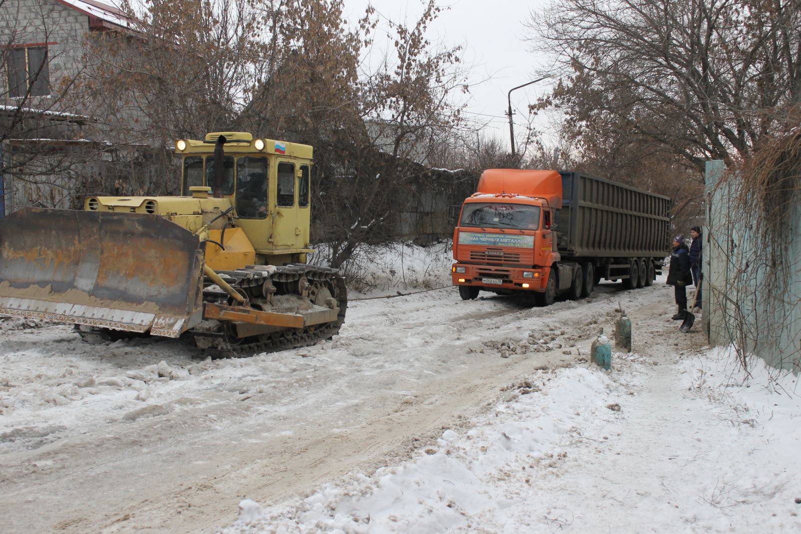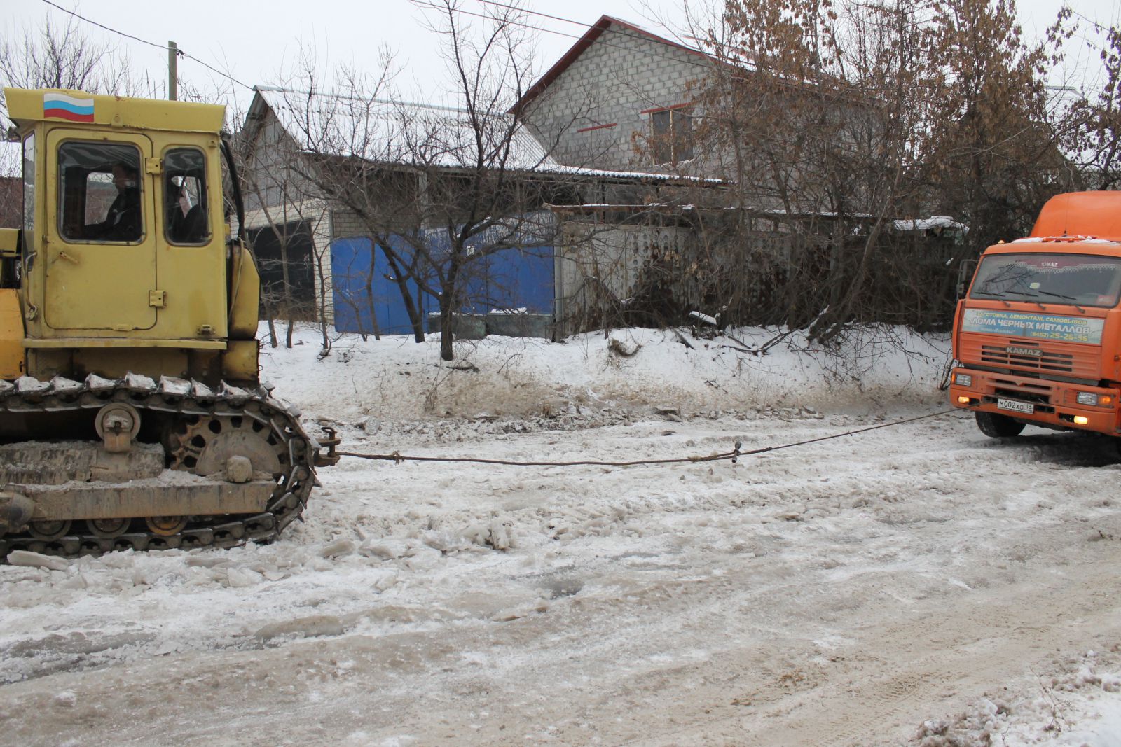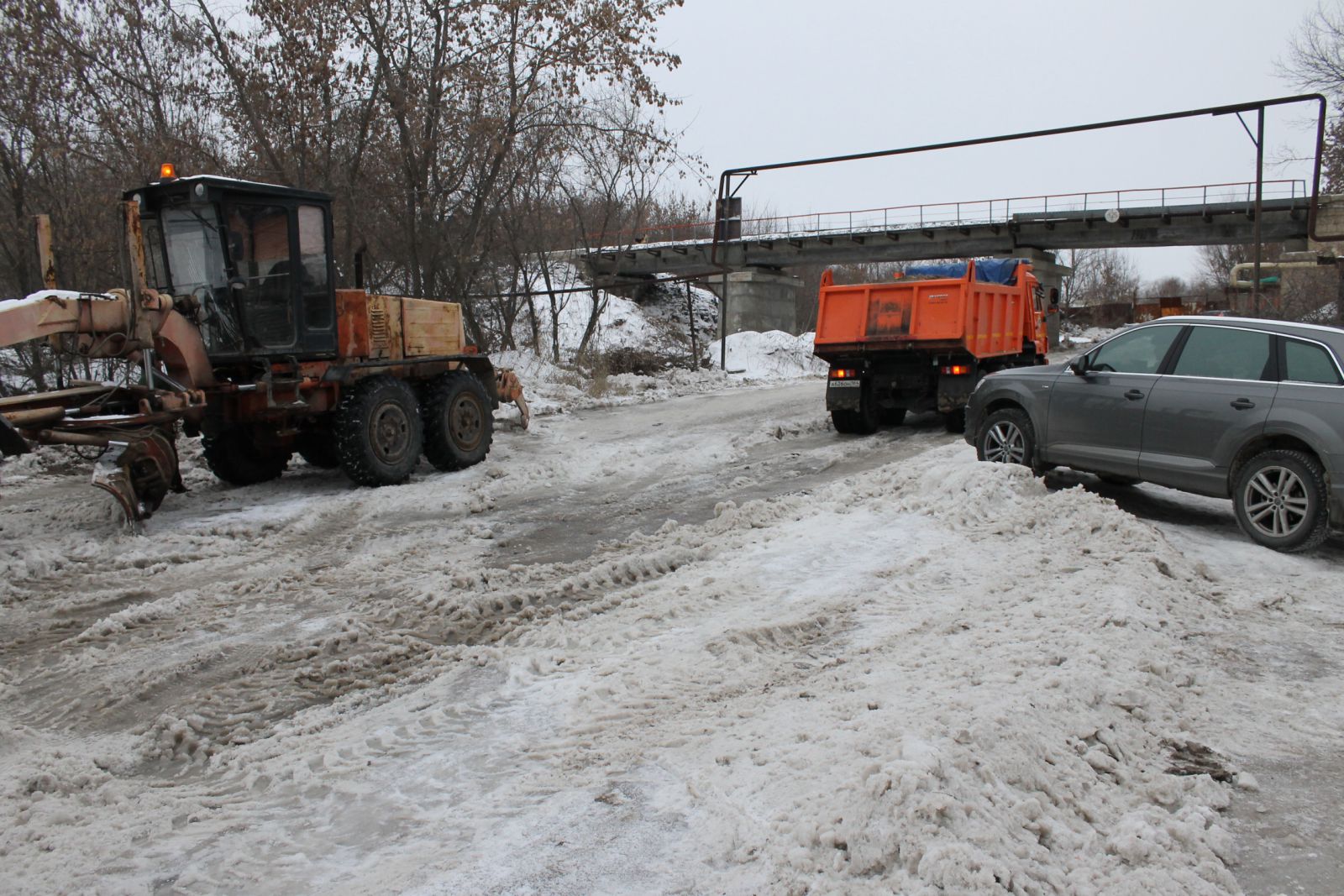 По прибытии на место перед инспектором «ДК» предстала картина в виде пробки длиной примерно в километр, состоящей, в основном, из большегрузов. На въезде в гору бульдозер тщетно пытался вытянуть фуру по обледенелой дороге, напоминающей просторы Арктики. Как пояснили очевидцы, фура не могла подняться самостоятельно уже не первый час, поэтому пришлось вызвать бульдозер (кстати, с большим трудом, но ему удалось вытянуть грузовик на вершину).