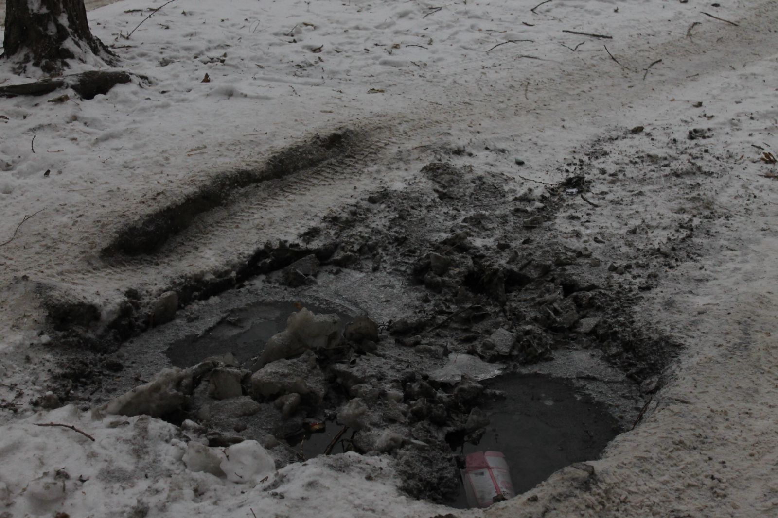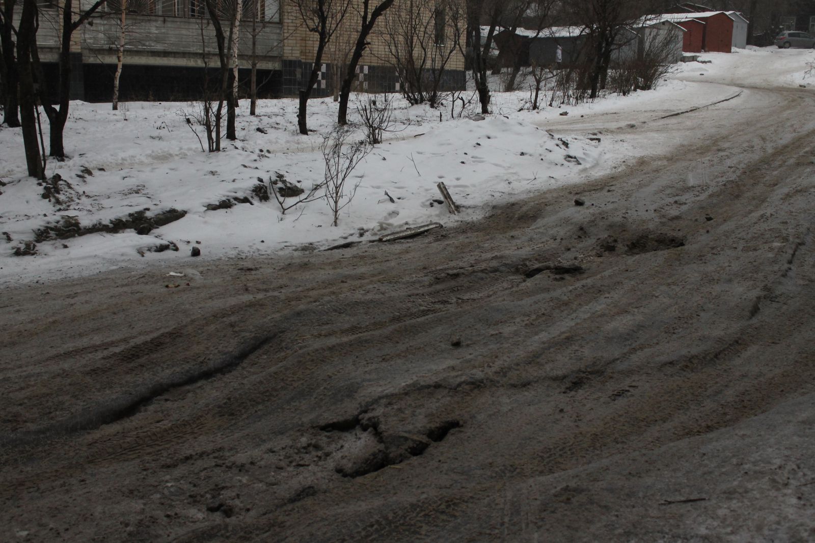 Помимо данного перекрестка весь отрезок дороги, ведущей в гору от 1-го Огородного проезда и до 1-го Прессового проезда, скован льдом. Это, в свою очередь, не просто затрудняет движение машин, а практически лишает возможности подняться в гору. На глазах у инспектора «ДК» машина марки «ГАЗель» не смогла взобраться туда после нескольких попыток. Буксуя на льду, она все же спустилась обратно к обледеневшему перекрестку. На этом отрезке дороги, видимо, была коммунальная авария. По крайней мере, видны следы, явно указывающие на вскрышные работы, которые хоть и находятся под слоем льда и снега, но выдают себя кусками разрытого асфальта.
