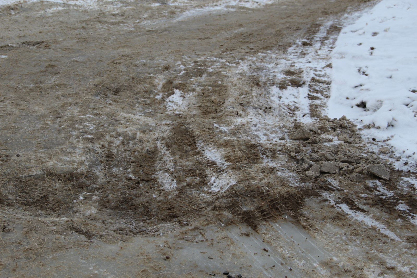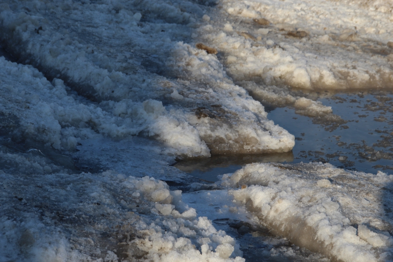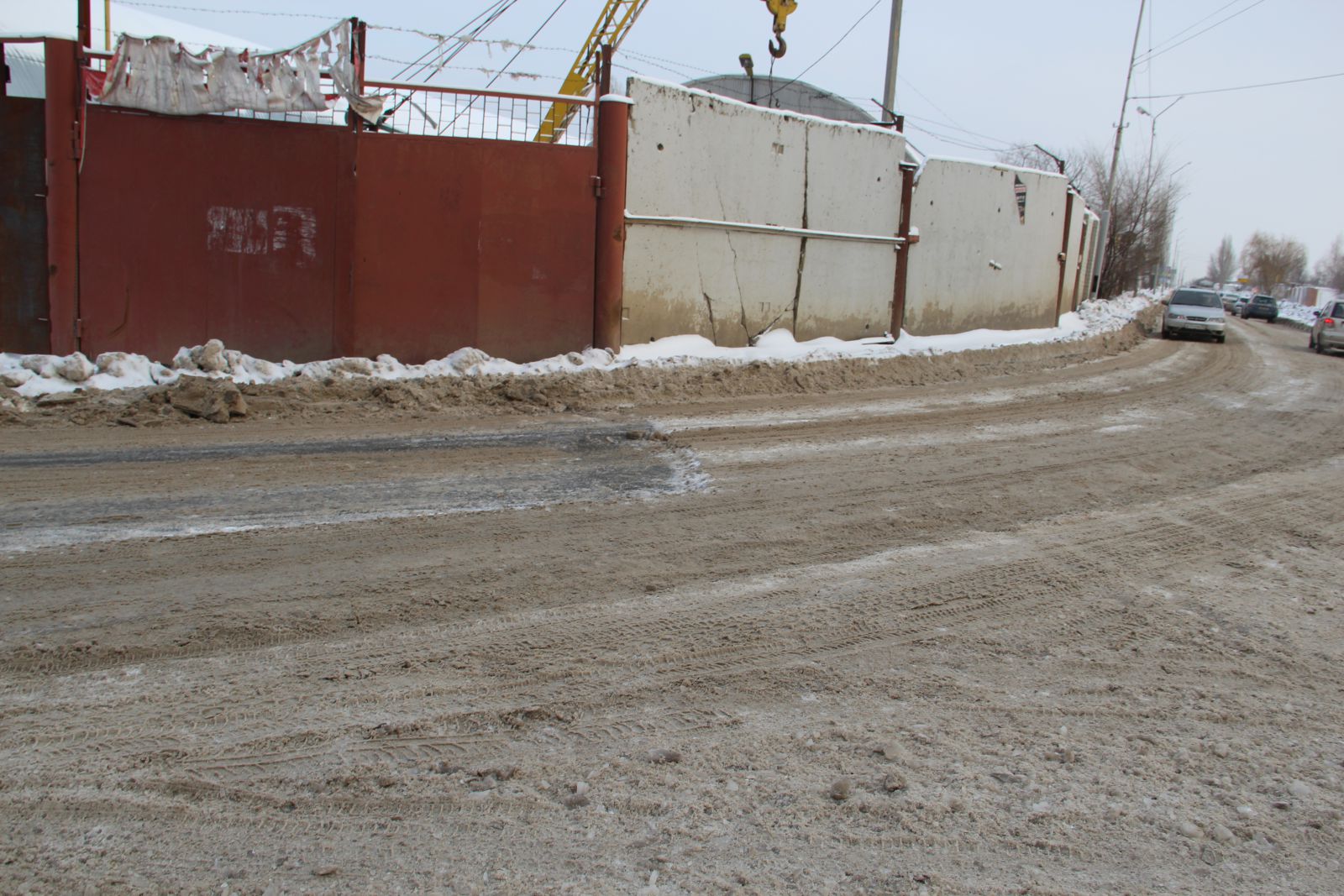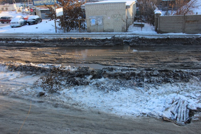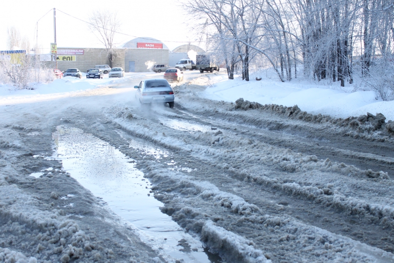 На улице Актюбинской в Новосоколовогорском поселке, где из-за образовавшихся ледяных кратеров и заполненных водой ям дорога стала не проездной, течь устранили, но от льда проезжая часть так и не освобождена. Автомобили накатали путь, по которому можно кое-как передвигаться, но он совершенно не пригоден для автомобилей с невысоким клиренсом.