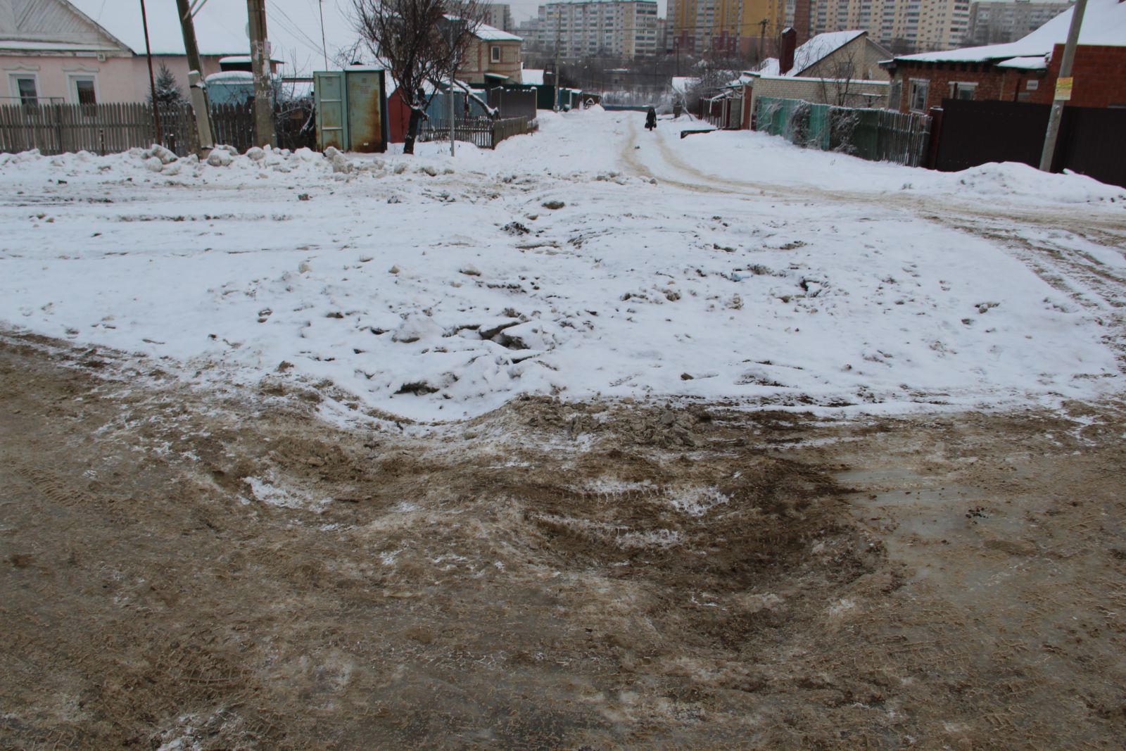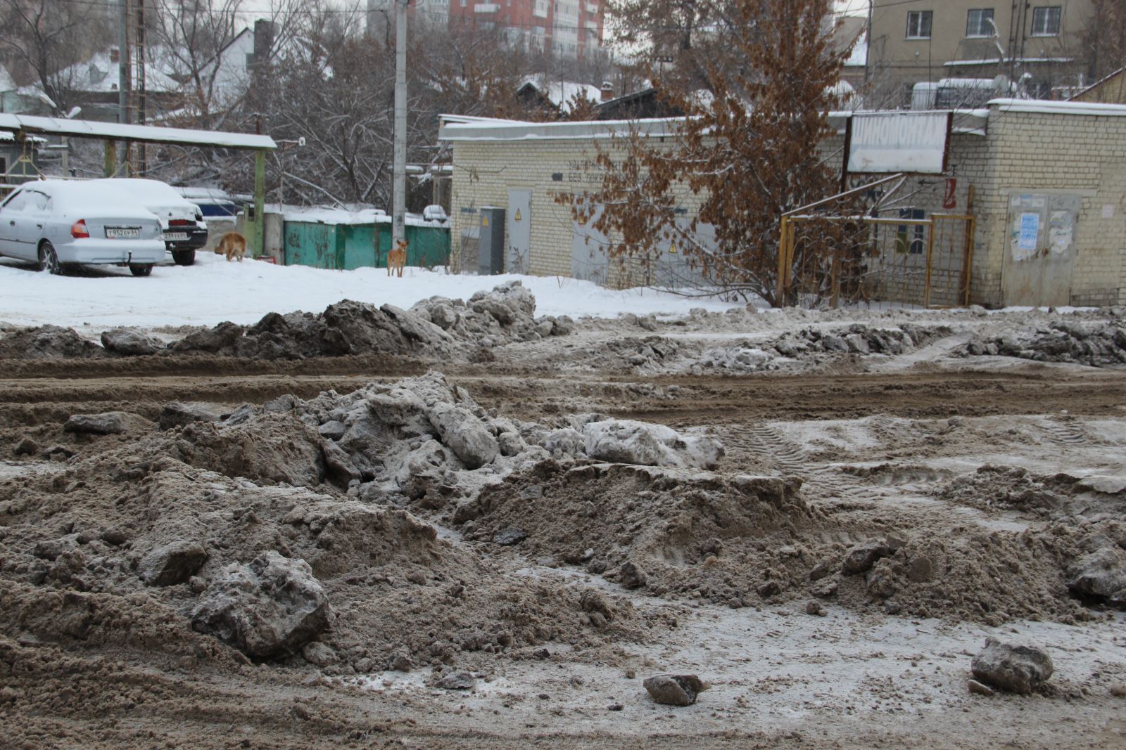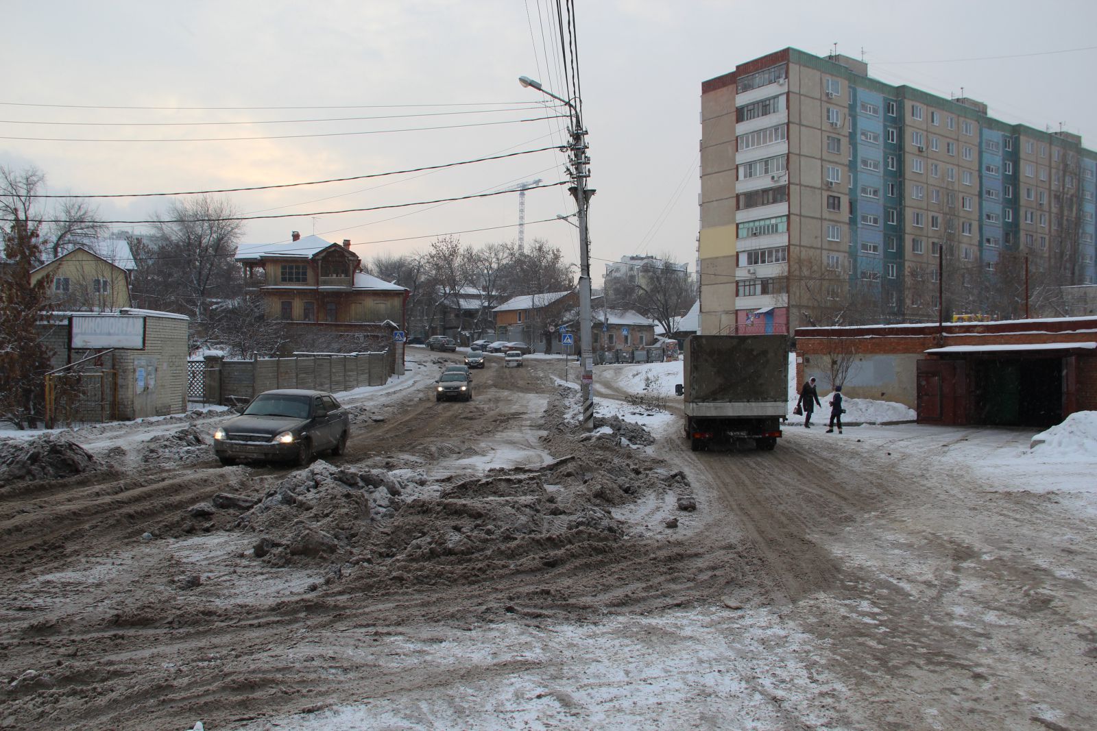 На улице Актюбинской в Новосоколовогорском поселке, где из-за образовавшихся ледяных кратеров и заполненных водой ям дорога стала не проездной, течь устранили, но от льда проезжая часть так и не освобождена. Автомобили накатали путь, по которому можно кое-как передвигаться, но он совершенно не пригоден для автомобилей с невысоким клиренсом.