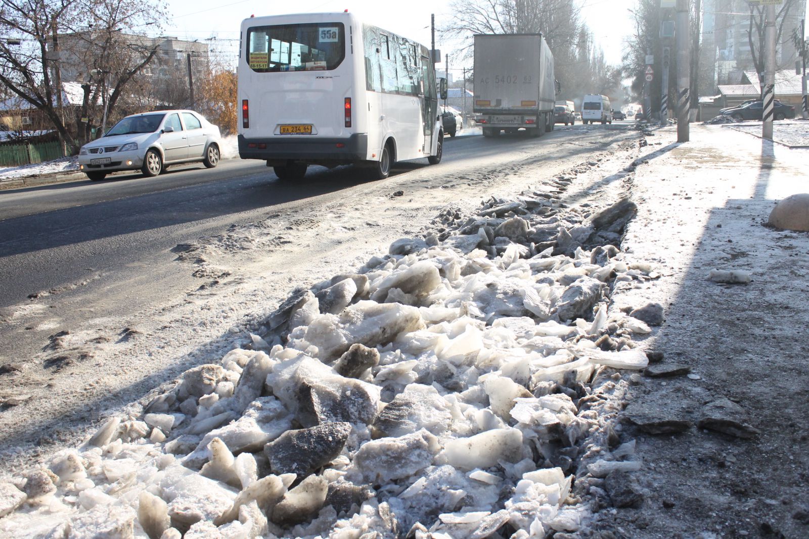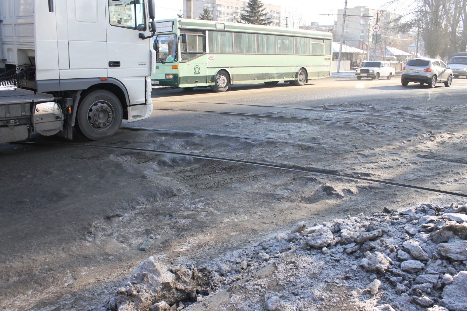 Таким образом, 2-й Комсомольский проезд вновь стал объездной дорогой, на которой хоть и остались ямы, но проехать все же можно. Правда, весной задуматься о ремонте улицы властям, вероятно, придется. Кроме того, гораздо легче стало проезжать по Политехнической, которую очистили ото льда (в том числе, рельсы), а также местами там заделали ямы.