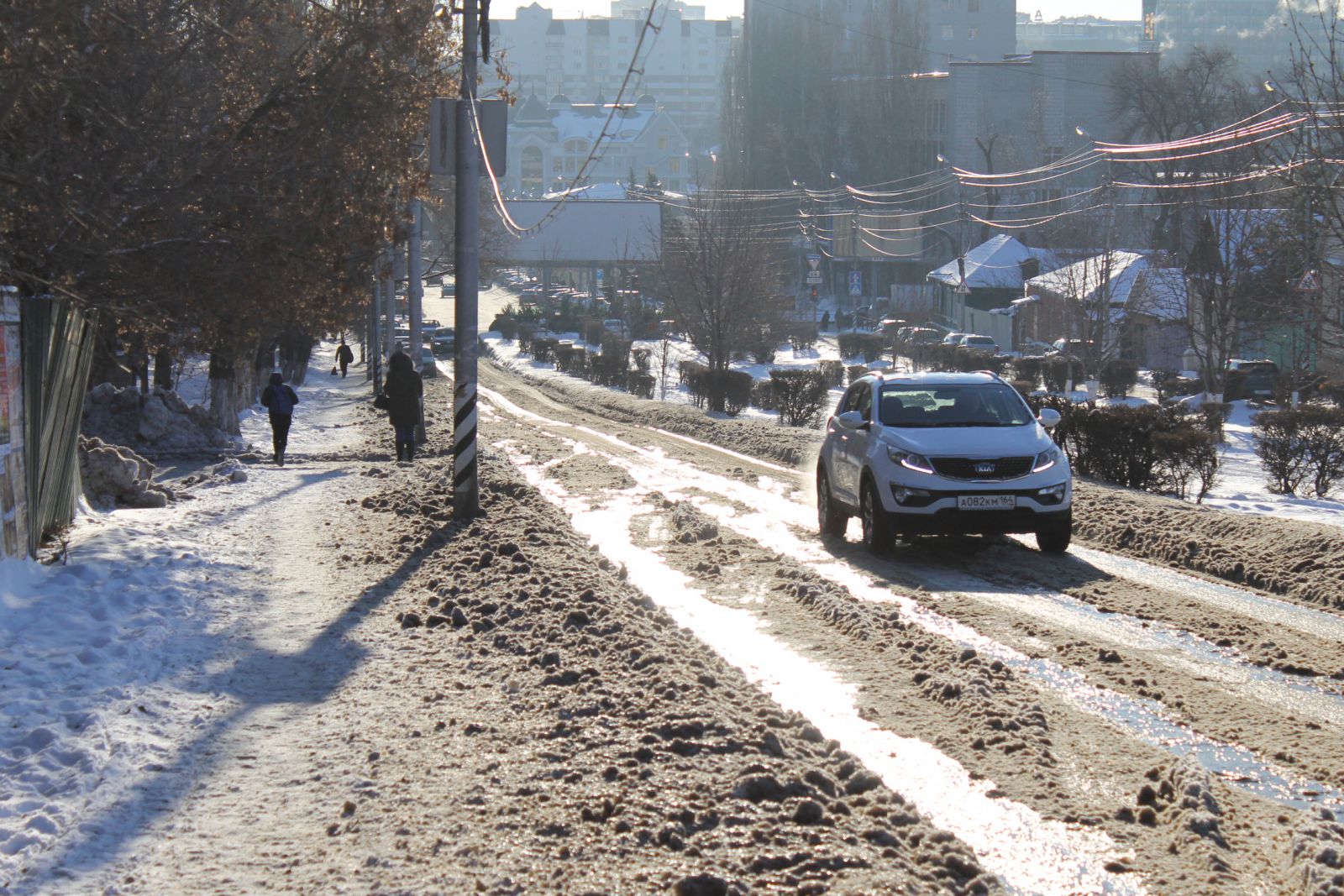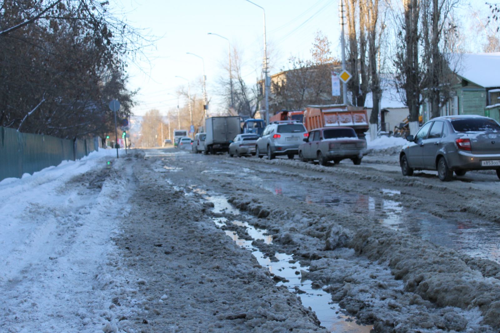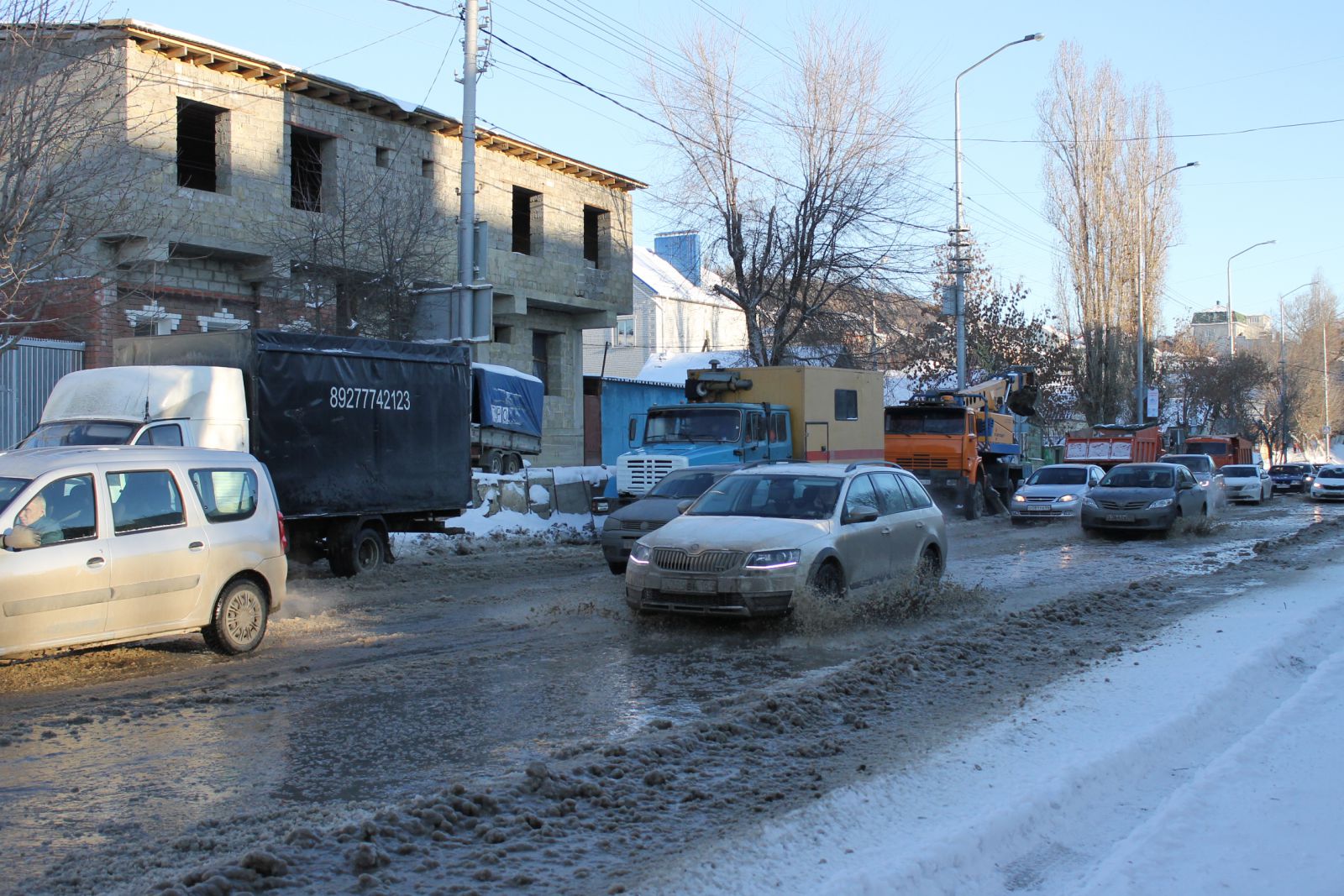 Сейчас над устранением аварии работают коммунальщики с применением спецтехники. При помощи помпы вода откачивается прямо на дорожную часть. Это, в свою очередь, затрудняет движение транспорта и сокращает ширину проезжей части дороги до одной полосы. Некоторые смелые автолюбители все же не боятся и рискуют проехать через это «море» из снежной каши и льда. Между тем, скопившееся месиво развезли вниз по улице Радищева, поэтому теперь затруднен подъем в гору.