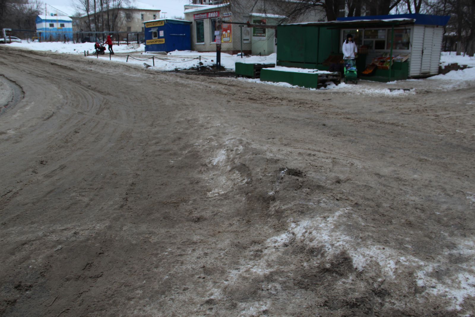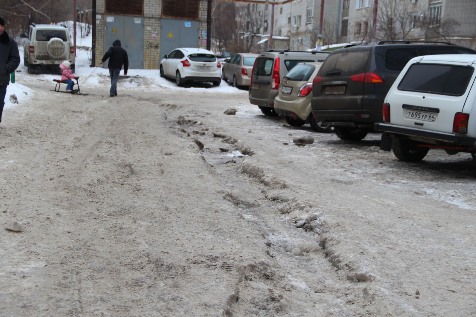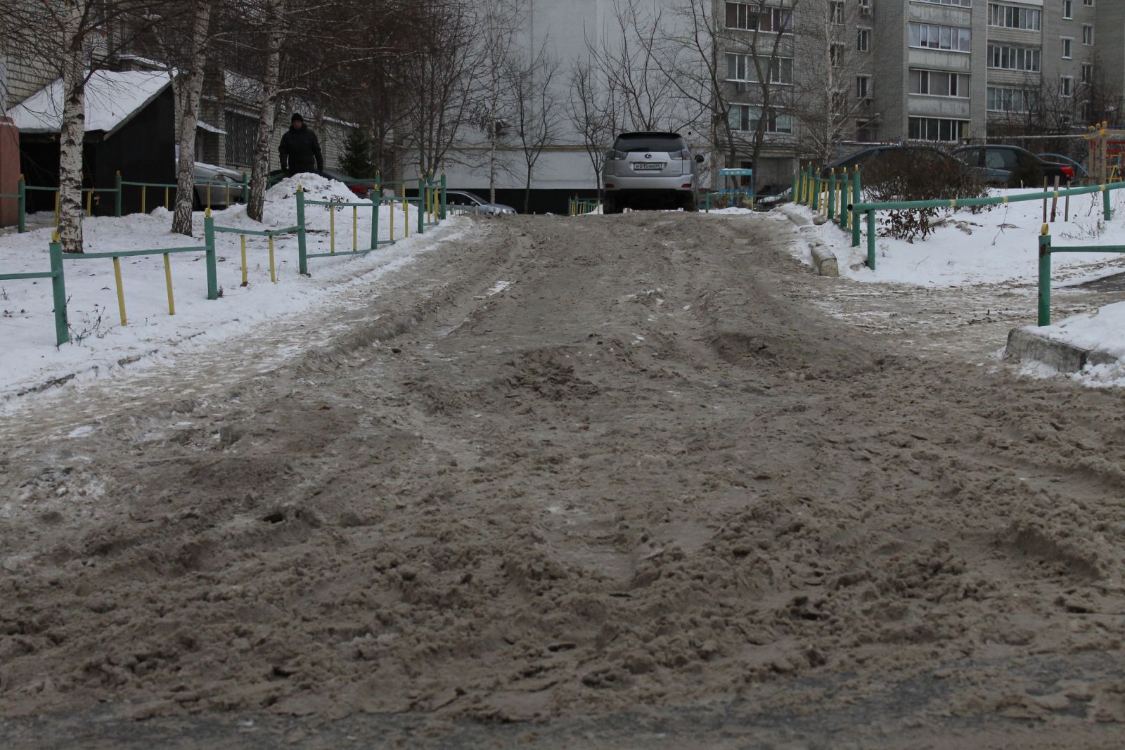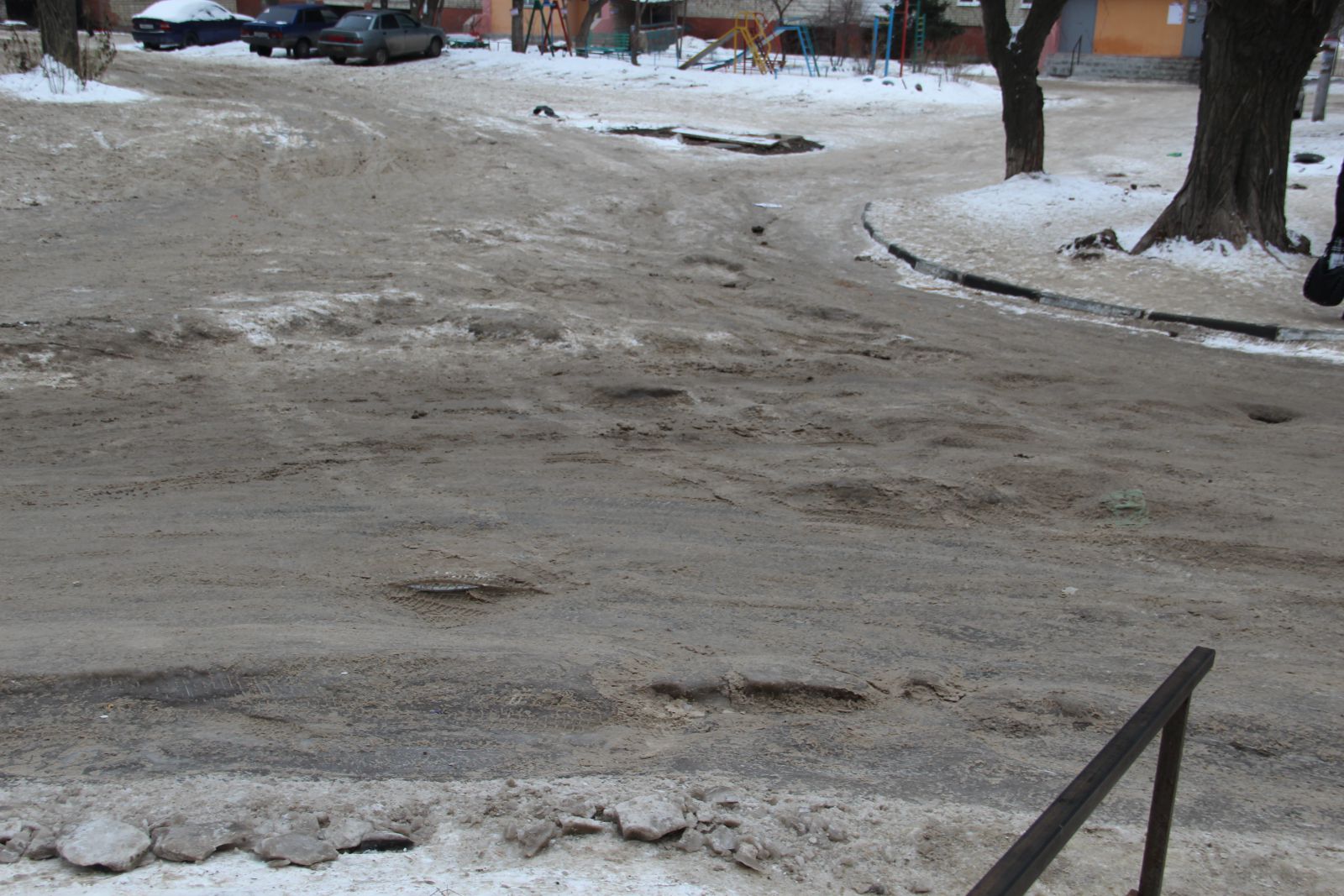 А вот жителям Юбилейного повезло больше. К приезду нашего инспектора здесь частично расчистили улицу Державинскую с пересекающей ее внутриквартальной дорогой, но наледь еще сохраняется на дорожном полотне вдоль дома №11 по Усть-Курдюмской, а также на дворовой территории дома №7б по Усть-Курдюмской, пострадавшей от коммунальной аварии. Возможно, работы еще будут продолжаться, так как горы грязного серого льда свалены на тротуарах и зеленой зоне.
